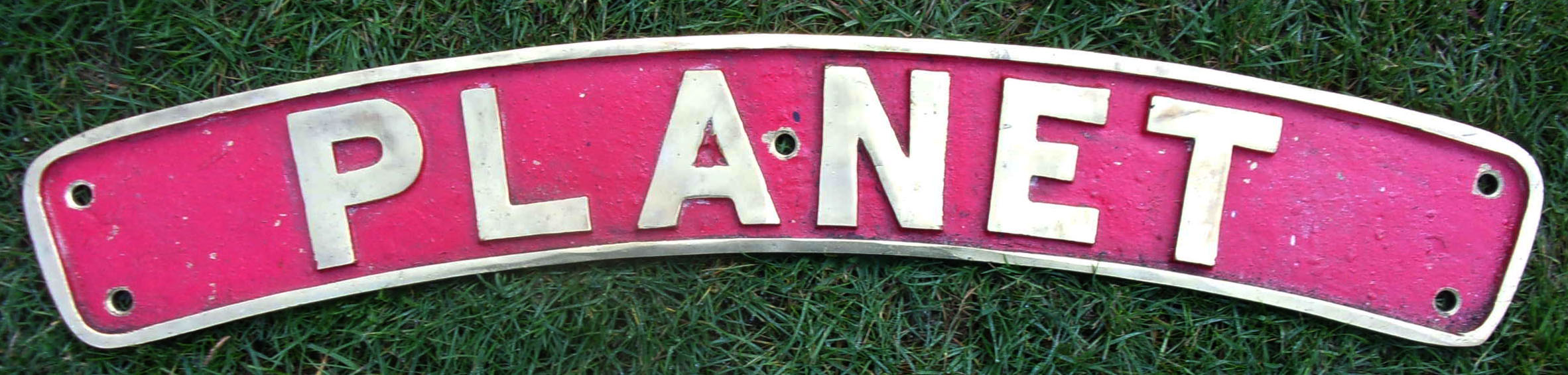 Reproduction Nameplate as Patriot Class “PLANET” 45545. Embossed cast brass. 27 3/4″ x 4″.