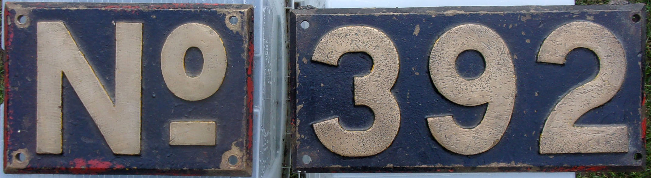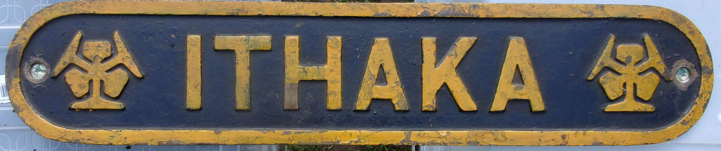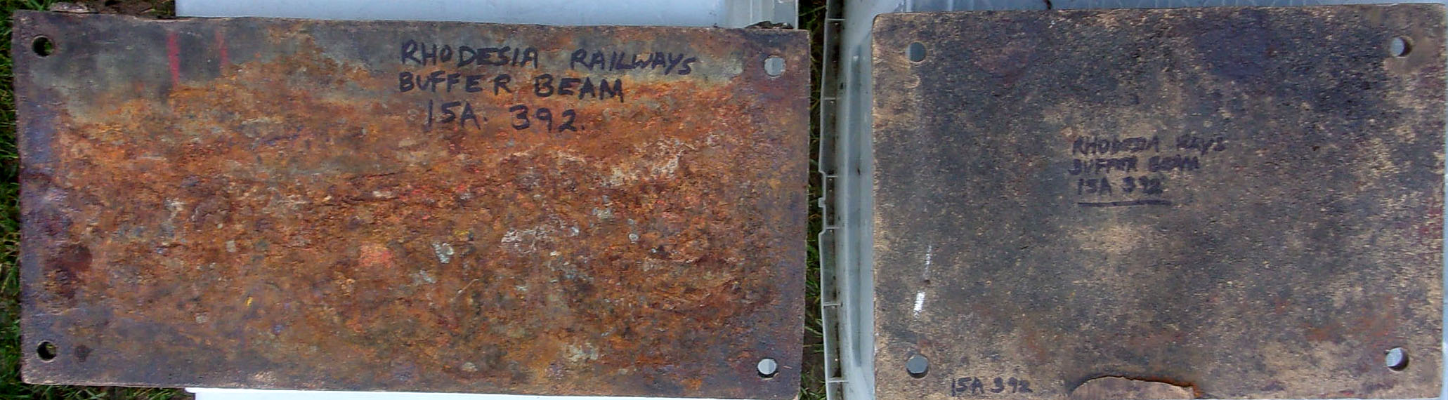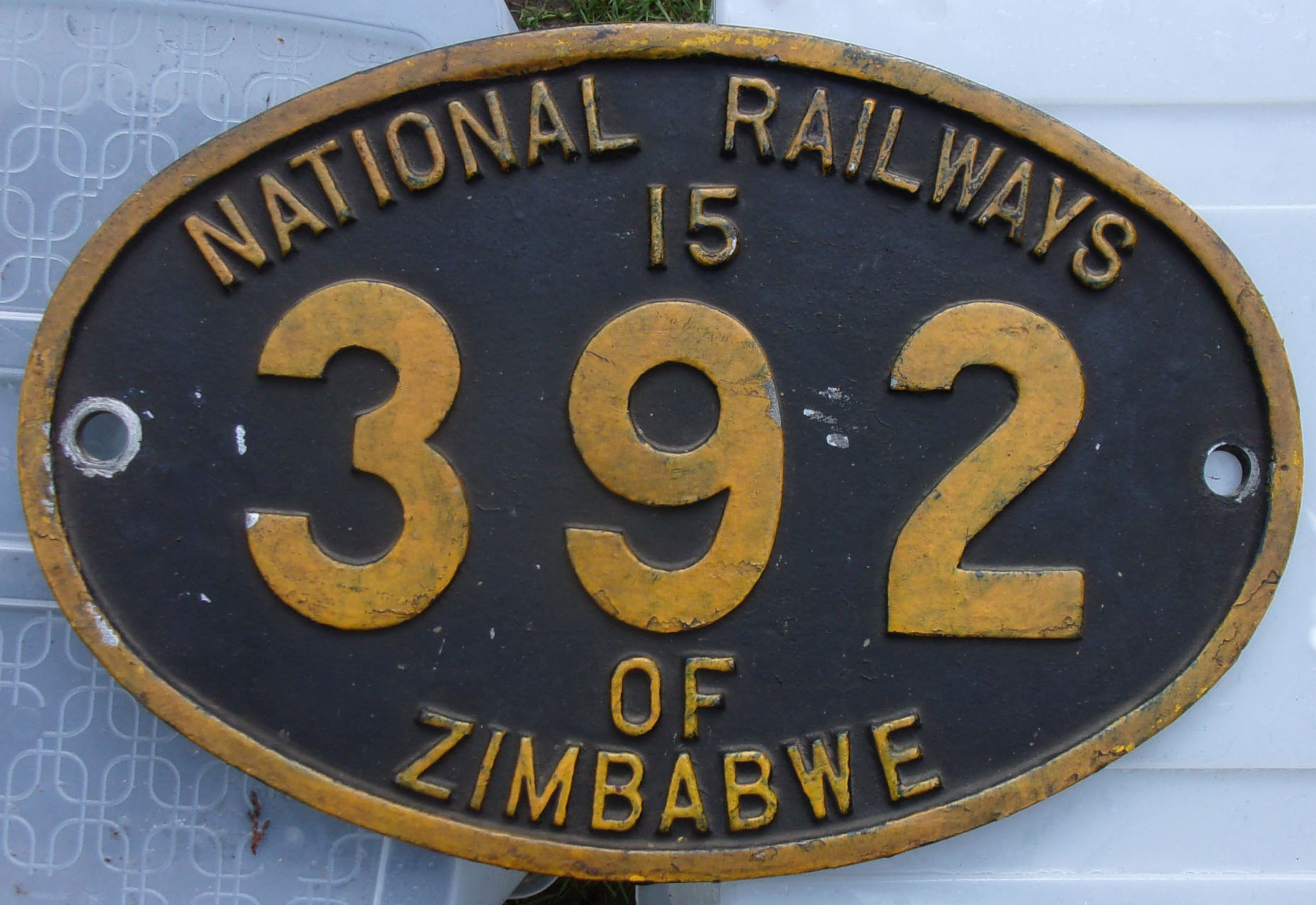 Rhodesian Locomotive Nameplate Set, including nameplate “ITHAKA” with cabside numberplate and buffer beam, no plate as carried by Class 15th Garratt Loco number 392. Built by Beyer Peacock Manchester 1950, all three plates, ex loco. N.P 29 3/4″ x 62, Cabside 18 3/4″ x 11 3/4″, BBP 11 1/2″ x 8″. 17″ x 8″. Embossed cast brass.