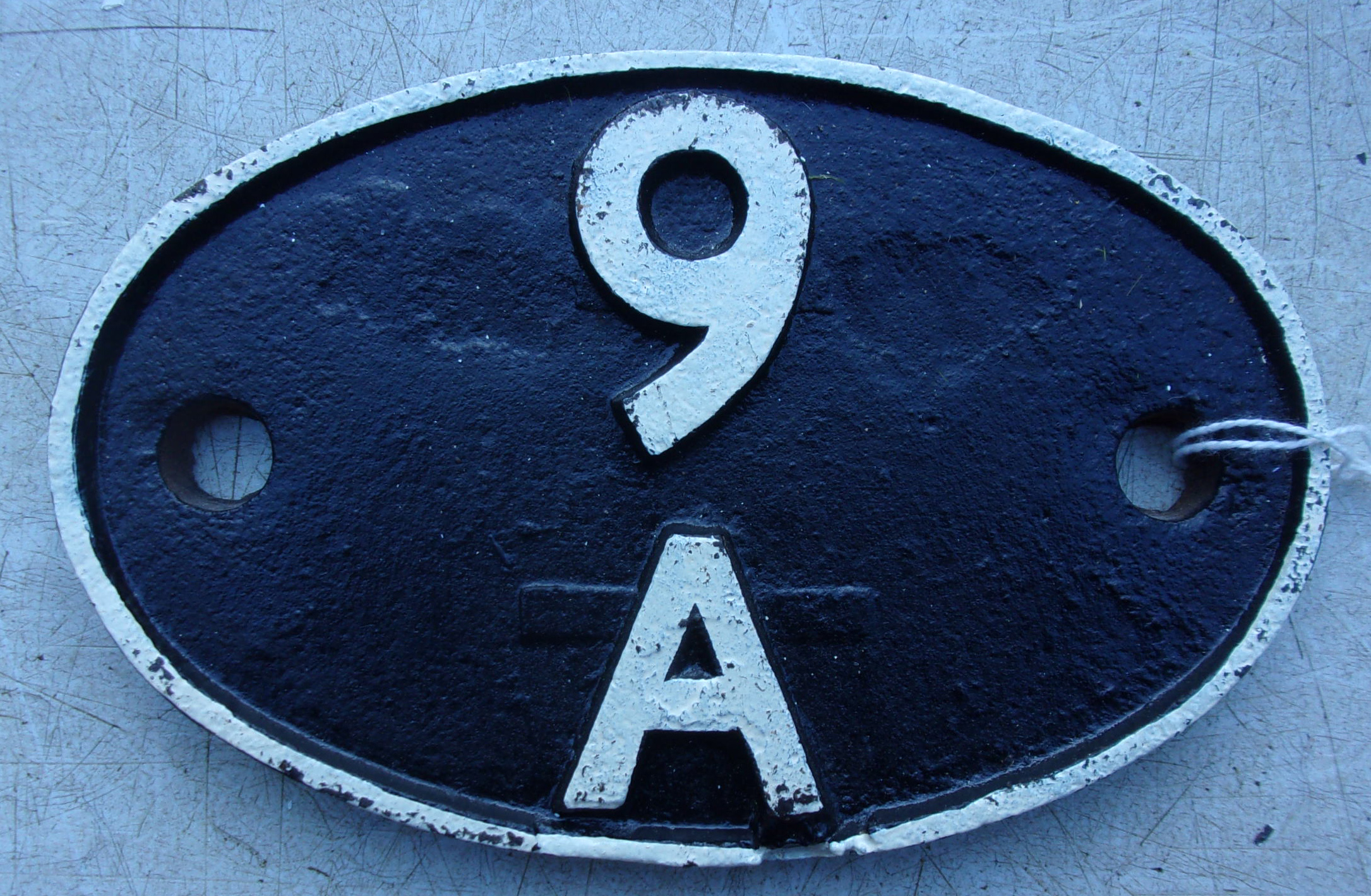 Shed plate “9A” Longsight 1948-1973, ex L&NWR depot, with an allocation of approx. 100 plus locos, including Coronation, Princess Royals, Jubilees, Patriots, Scots, Britannia’s, Duke of Gloucester etc. Repainted face, ex loco back. 2 x pictures to view.