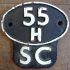 | Shed Plate with self cleaning plate “55H” Neville Hill 1960-73 ex NER Depot. Repainted face, clean ex loco back. |