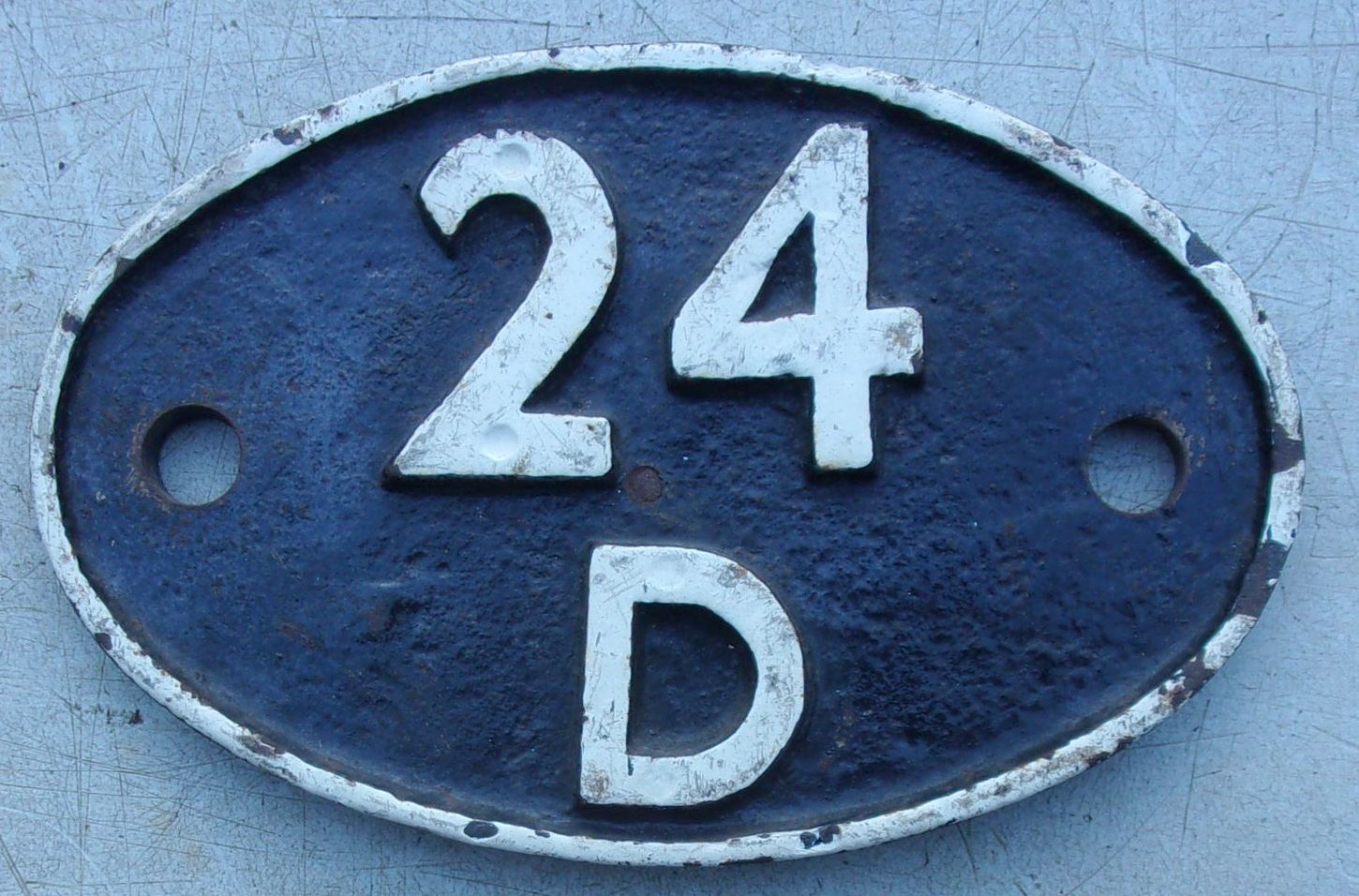 Shedplate “24D” Lower Darwen 1948-1963, ex L&Y depot with an allocation of 30 plus locos in 1955. 2 x pictures to view.