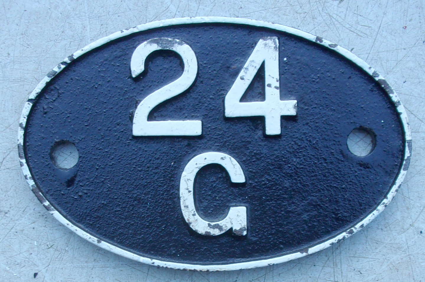Shedplate “24G” Skipton 1957-1963. Ex Midland depot with an allocation of 24 plus locos in 1958. Repainted face & back. 2 x pictures to view.