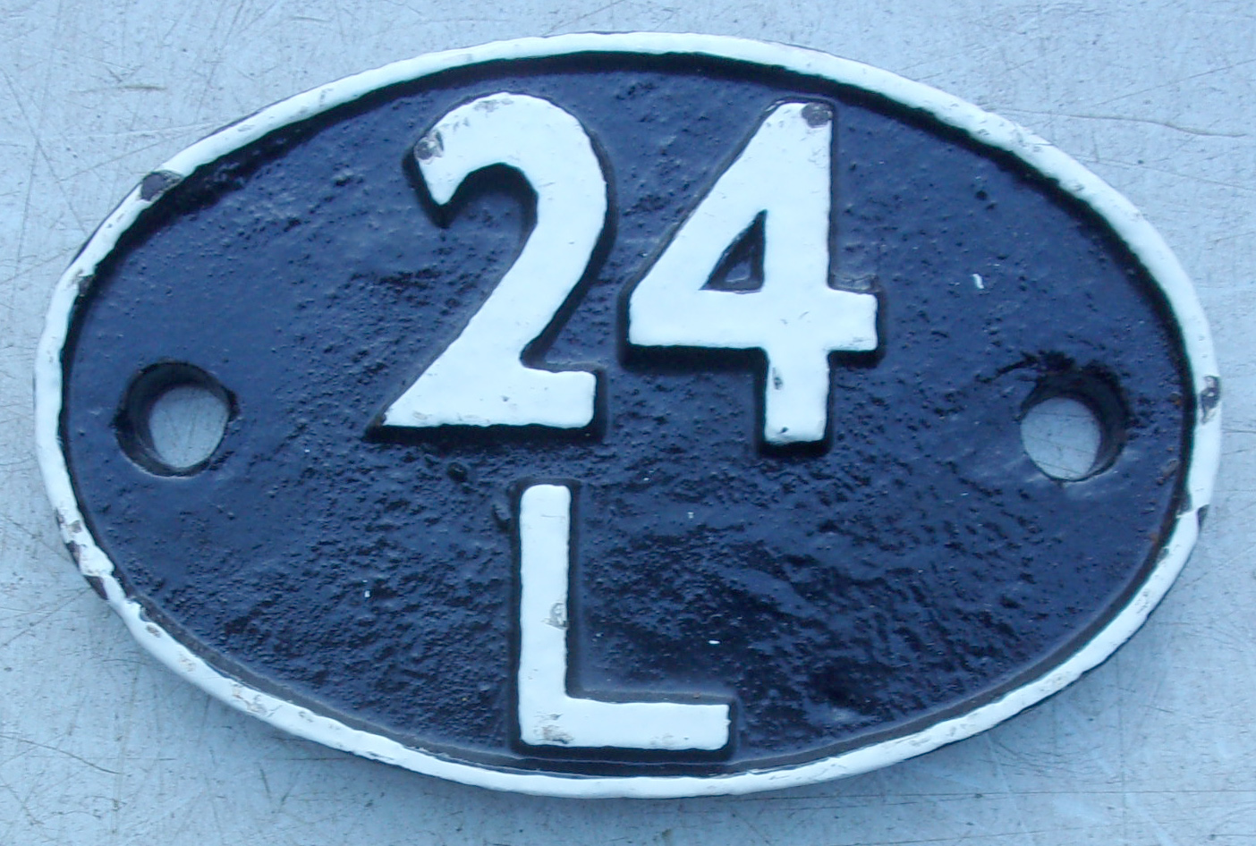 Shedplate “24L” Carnforth 1958-1963. Ex LNWR depot with an allocation of 44 plus locos in 1958. Repainted. 2 x pictures to view.