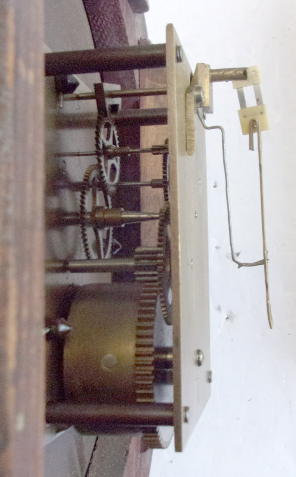 Single Fusee 10″ Wall Clock, face written GWR, this looks ok but Dobwalls has been added as this was the famous miniature USA Railway at this location, sadly no more. Complete with pendulum & key. (4 x images to view).