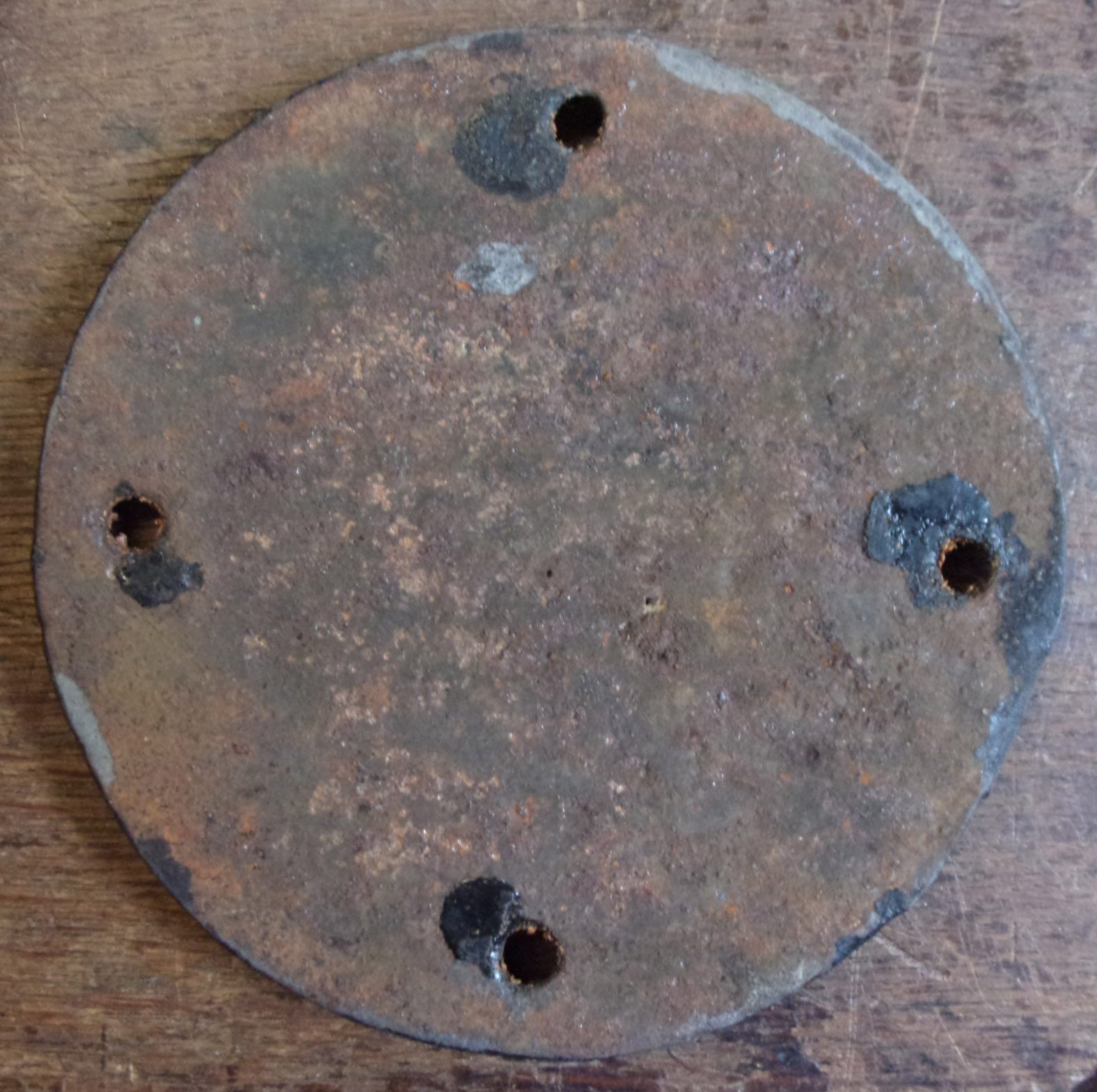 South Eastern & Chatham Railway Coach Weight Plate “Tare 13 Tons”, removed from a coach body, grounded at Canterbury West Station Allotments 1967/68. 4 1/2″ diameter.
