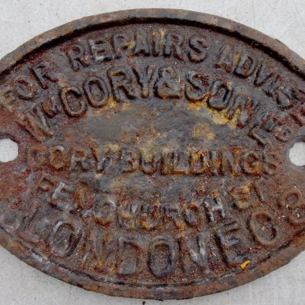 Standard Railway Wagon Co. Ltd Reddish & Heywood Builders”, cast iron in shape of a bell. The owner of the company was a Mr Bell who resided in Poynton, Cheshire, local to us. Rusty condition.