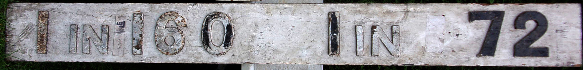 Unknown to us Gradient Post “1 in 160 – 1 in 72″. Timber board, white metal numerals. 64″ x 7”.