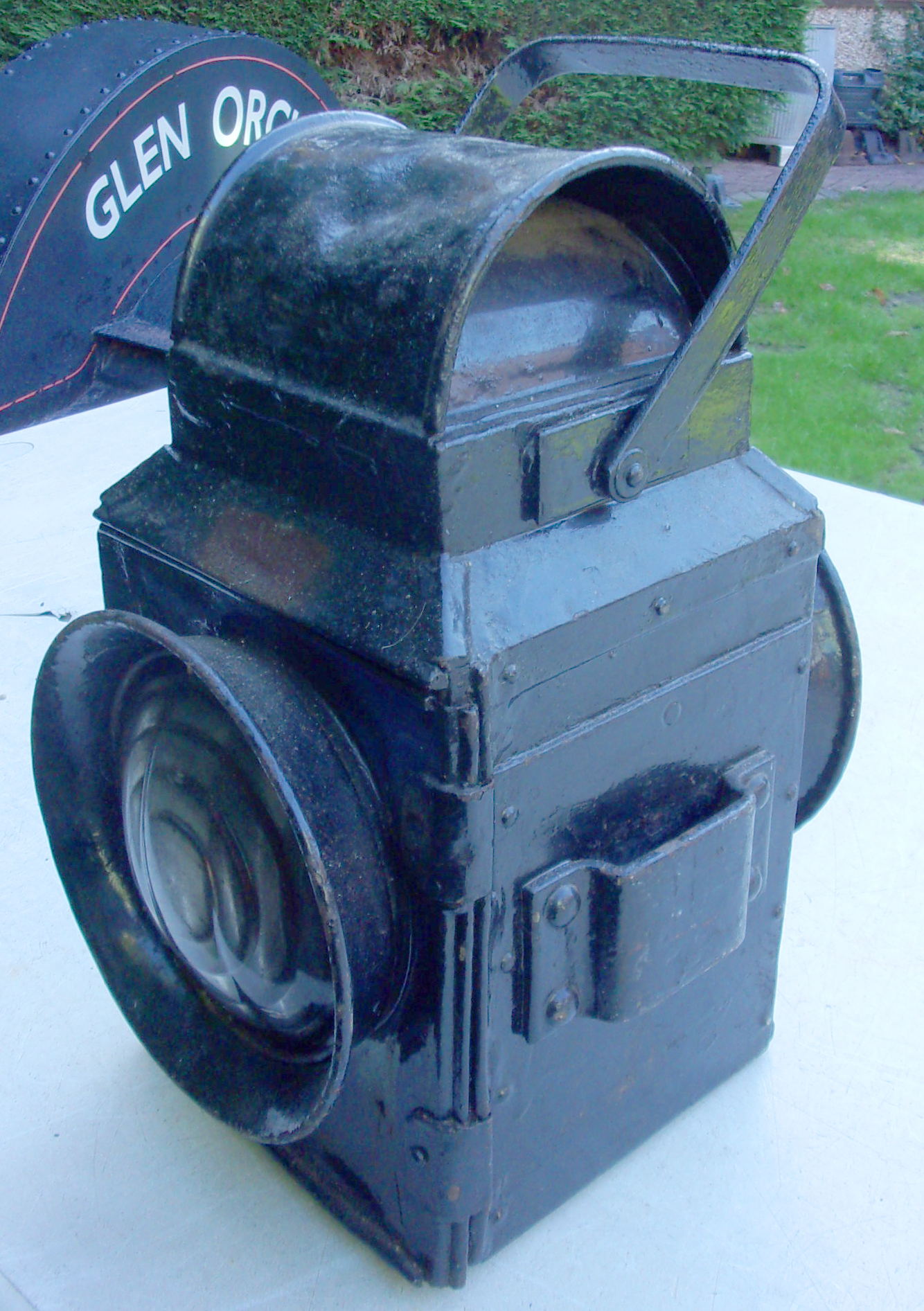 Unmarked Brake Van Lamp, complete with slide in vessel, 2 x good bullseye lenses. 2 x pictures to view.