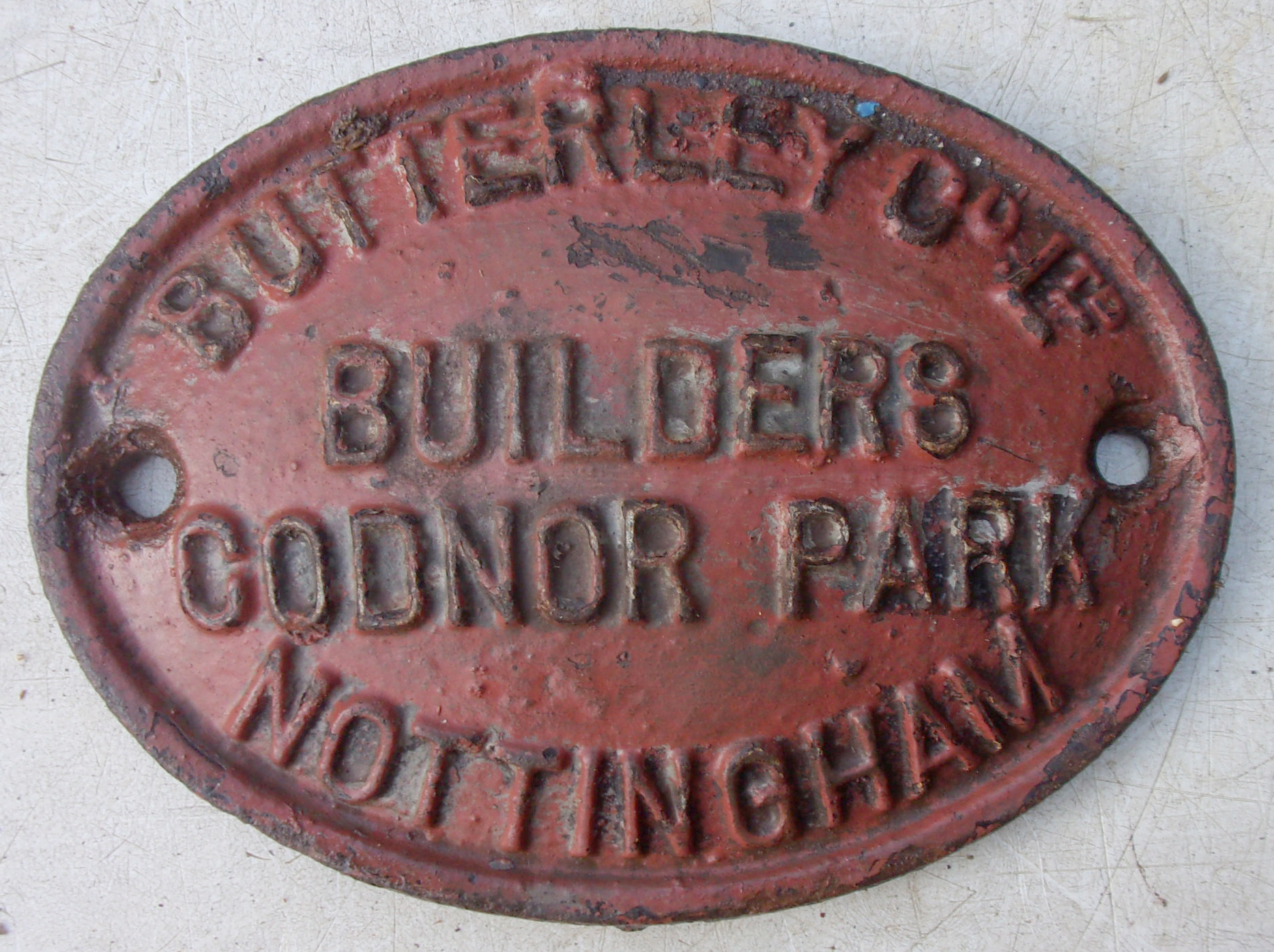 Wagon Makers plate “Butterley Co. Ltd, Builders Codnor Park Nottingham”, ex wagon.