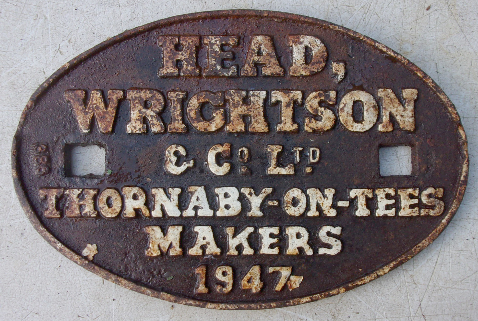 Wagon Makers plate “Head Wrightson & Co. Ltd Thornaby-On-Tees Makers 1947”, ex wagon.