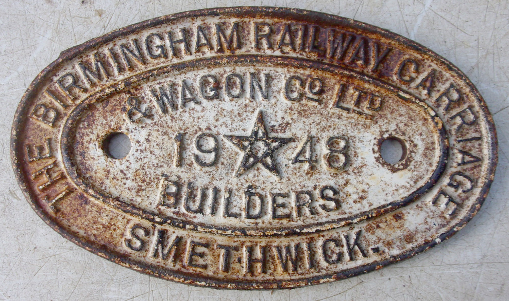 Wagon Makersplate “The Birmingham Railway Carriage & Wagon Co. Ltd, Smethwick Builders 1948”