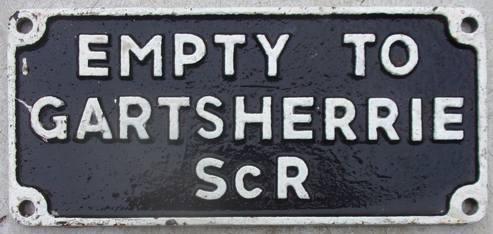 Wagon Plate “Empty to Gartsherrie SCR”. Repainted face only. Cast iron, sound condition.