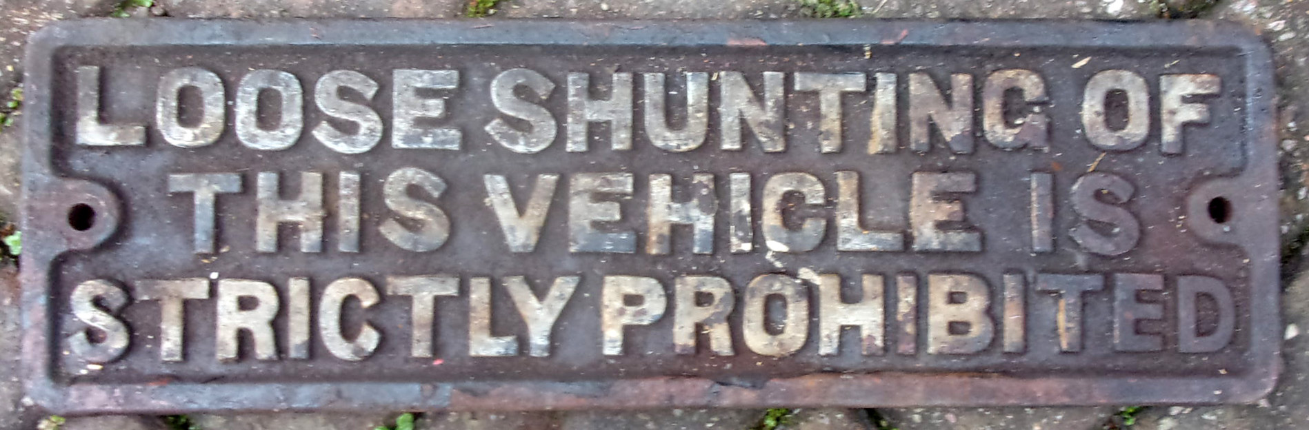 Wagon Plate “Loose Shunting of this vehicle is strictly prohibited”. Repainted face, cast iron, sound condition. 20″ x 6″.