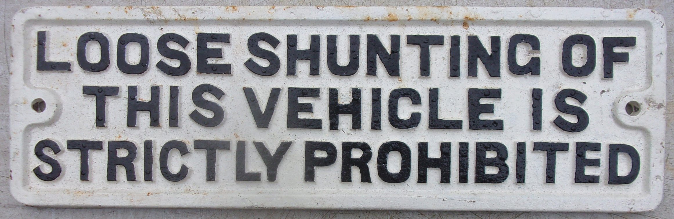 Wagon Plate “Loose Shunting of this vehicle is strictly prohibited”. Repainted face, cast iron, sound condition. 20″ x 6″.
