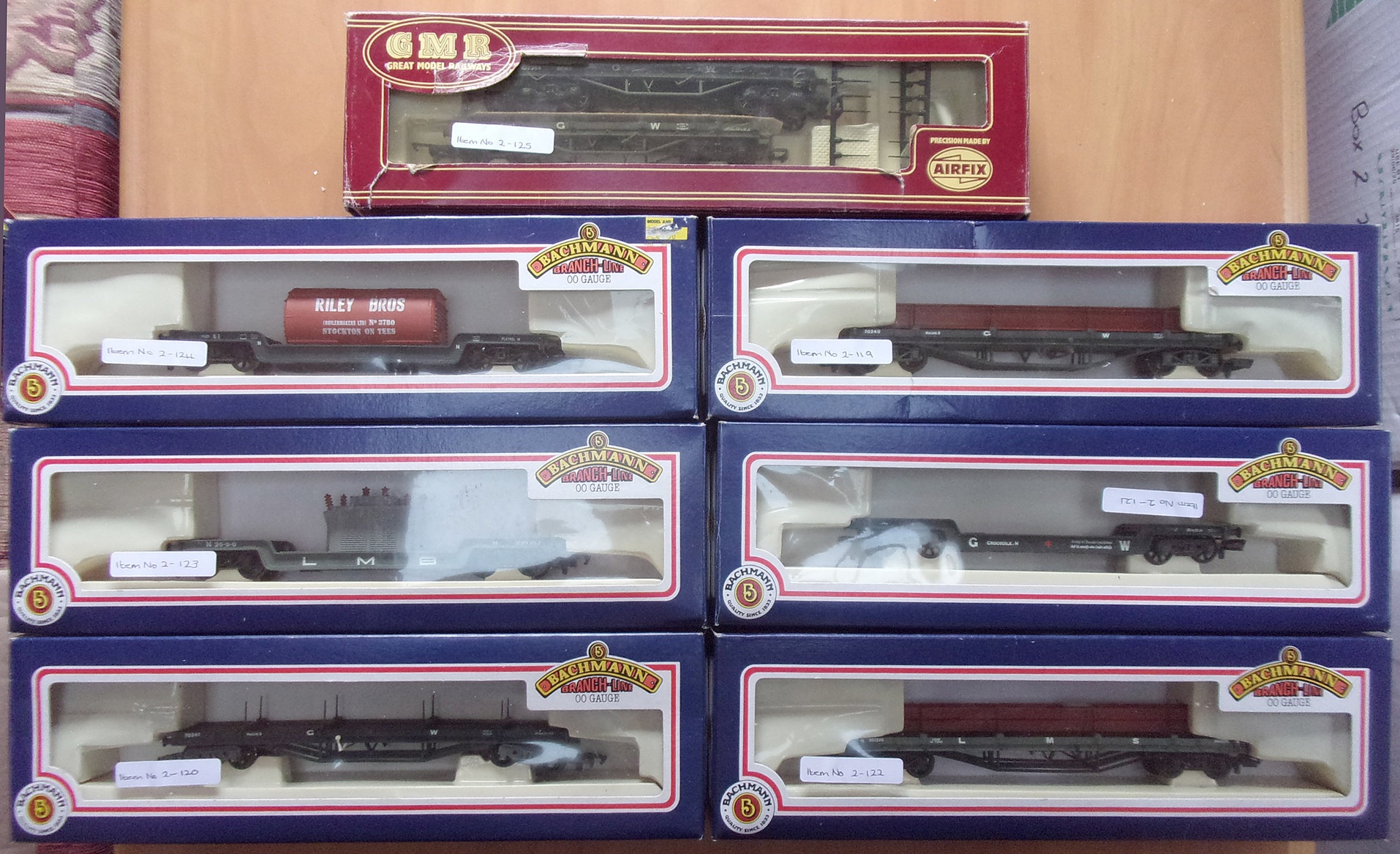 6 X 00 BOGIE WAGONS BY BACHMAN, AS NEW, BOXED. PLUS TWIN SET BOGIE WAGONS BY AIRFIX. BOXED, RUBBED. | View/Bid |