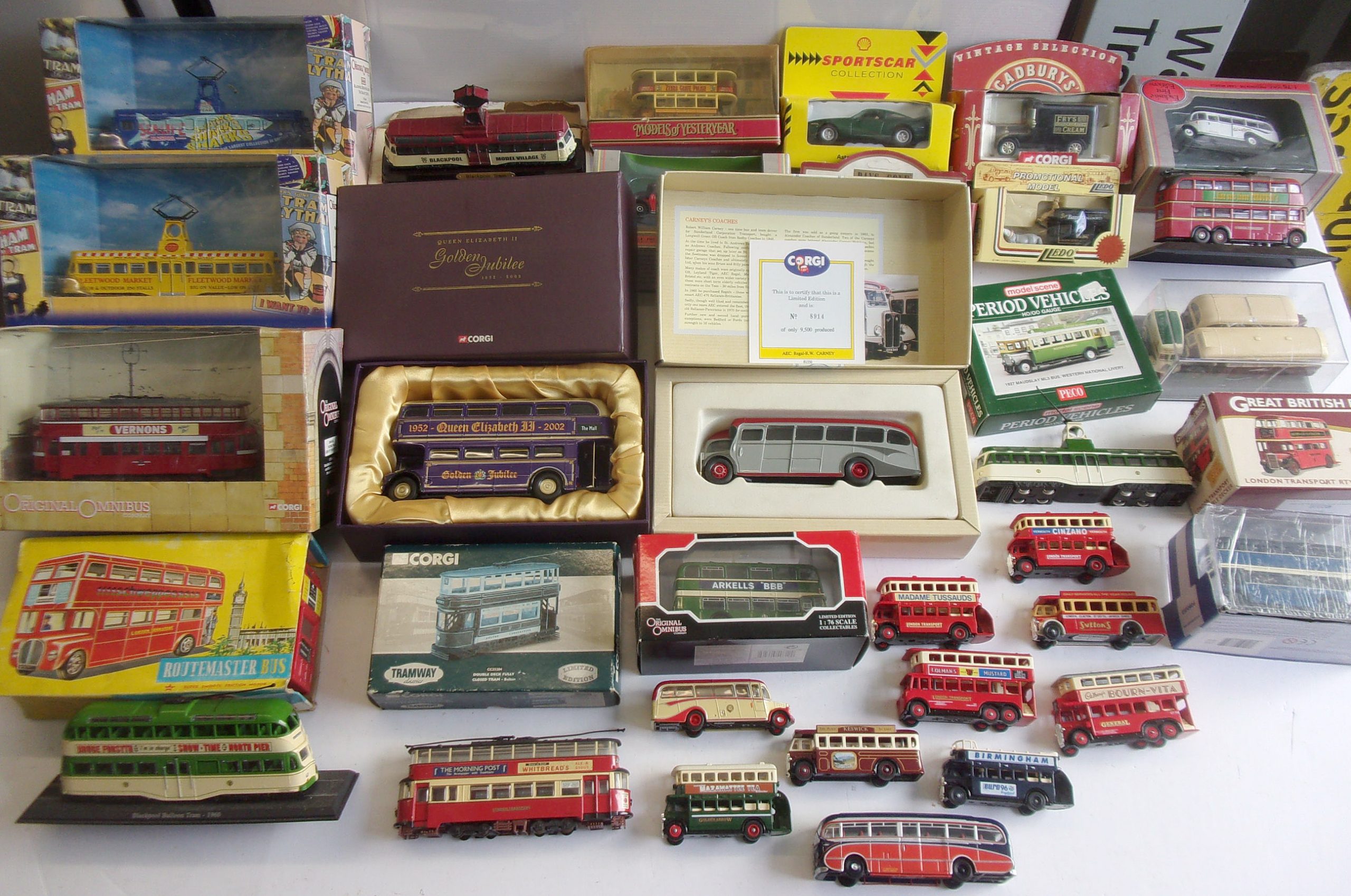 QUANTITY OF DIE-CAST BUSES & TRAMS, BOXED & UNBOXED. ALL IN PRISTINE CONDITION. CONTAINS LIMITED EDITION CORGI MODELS. | View/Bid |