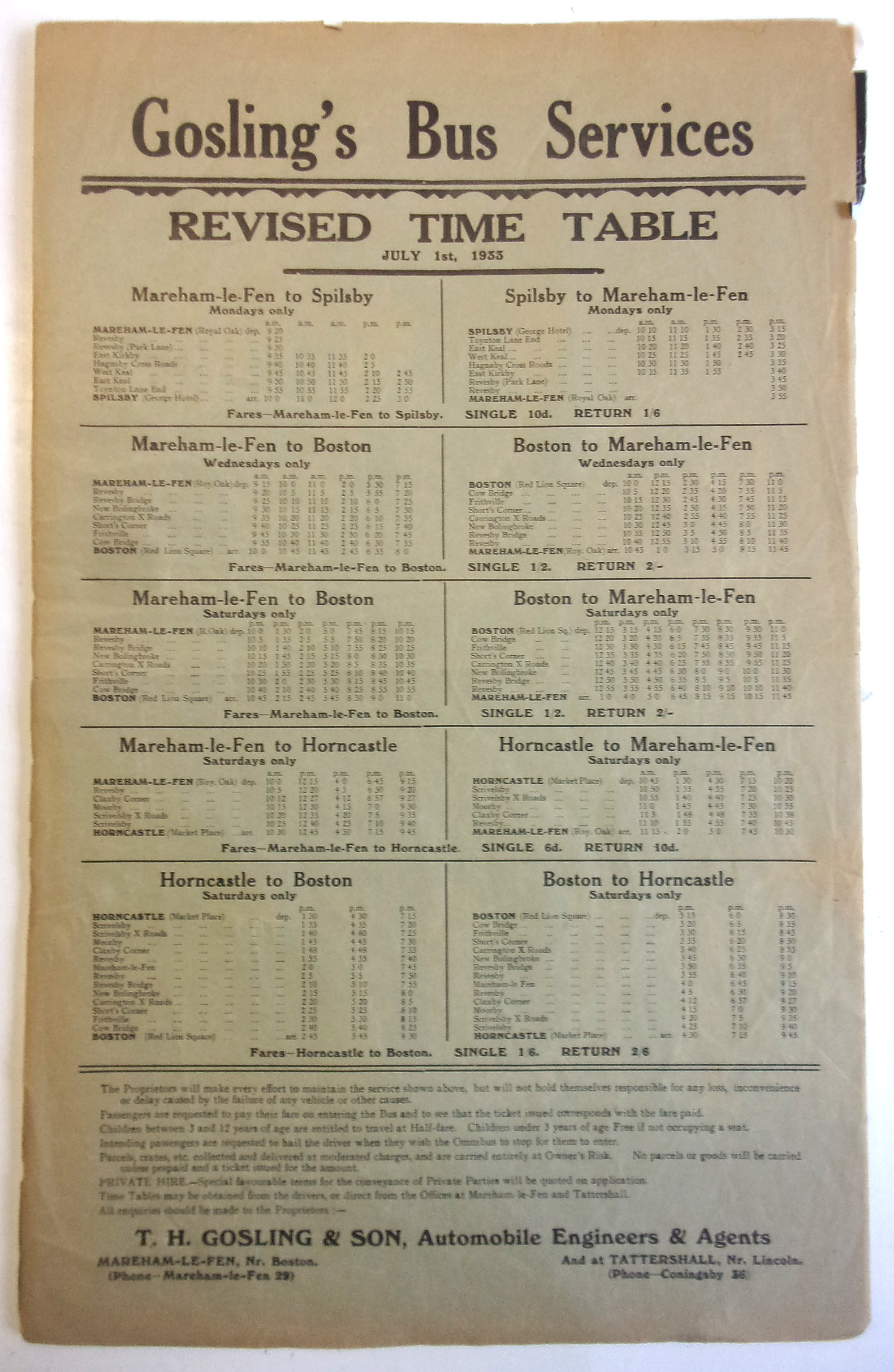 GOSLING BUS SERVICES, JULY 1ST 1933, LINCOLN AREA. 11″ x 18″. V.G.C. FOR AGE. | View/Bid |