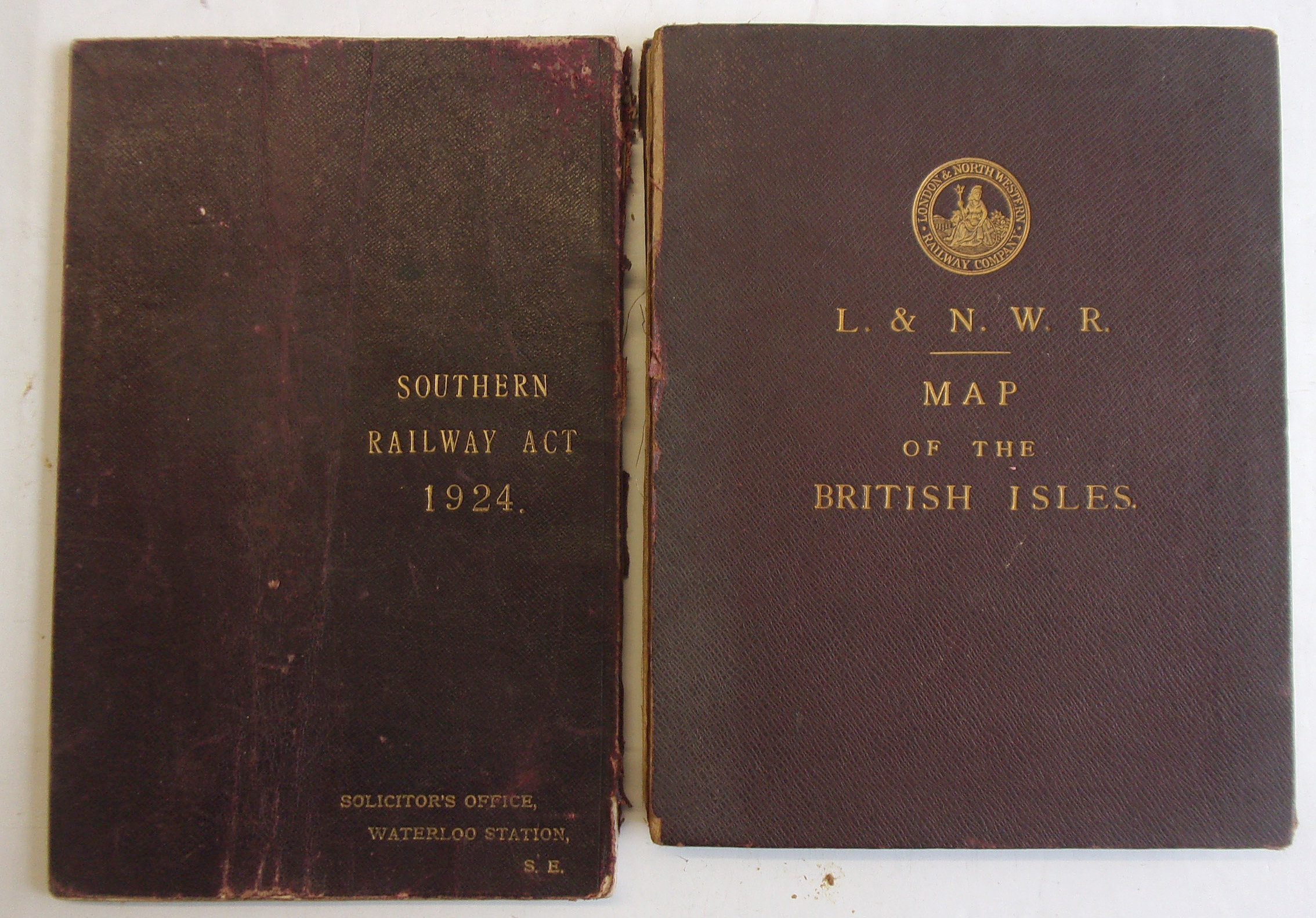 L&NWR MAP OF BRITISH ISLES ON LINEN BOARDS TO FRONT & BACK, COMES WITH SOUTHERN RLY ACT 1924, SOLICITORS OFFICE, WATERLOO STATION, COMPLETE BOARDS OF MAP ONE DETACHED. ( 2 x images to view) | View/Bid |