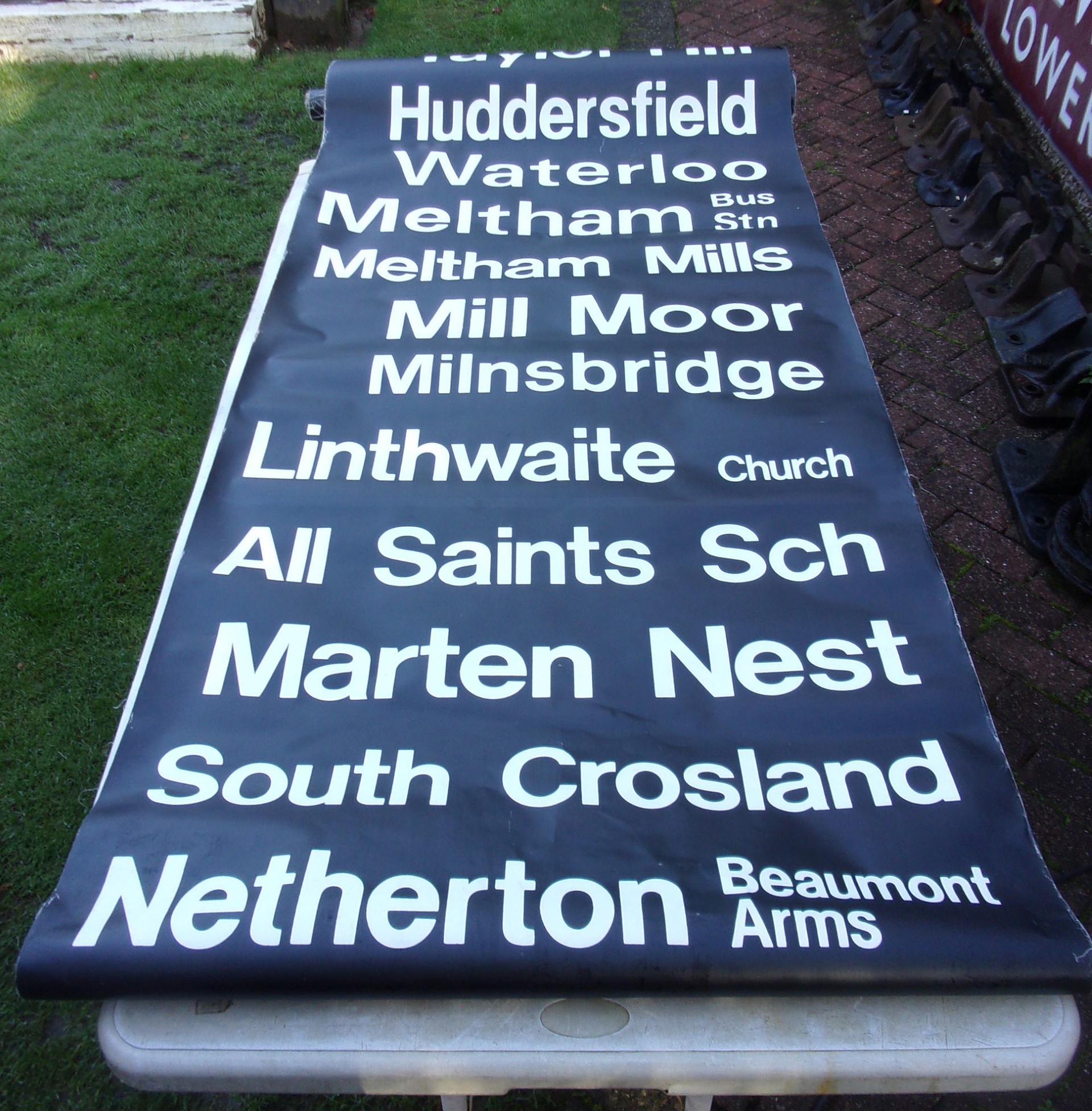 BUS DESTINATION BLIND for the Huddersfield Area. 32″ wide, very long on linen. | View/Bid |