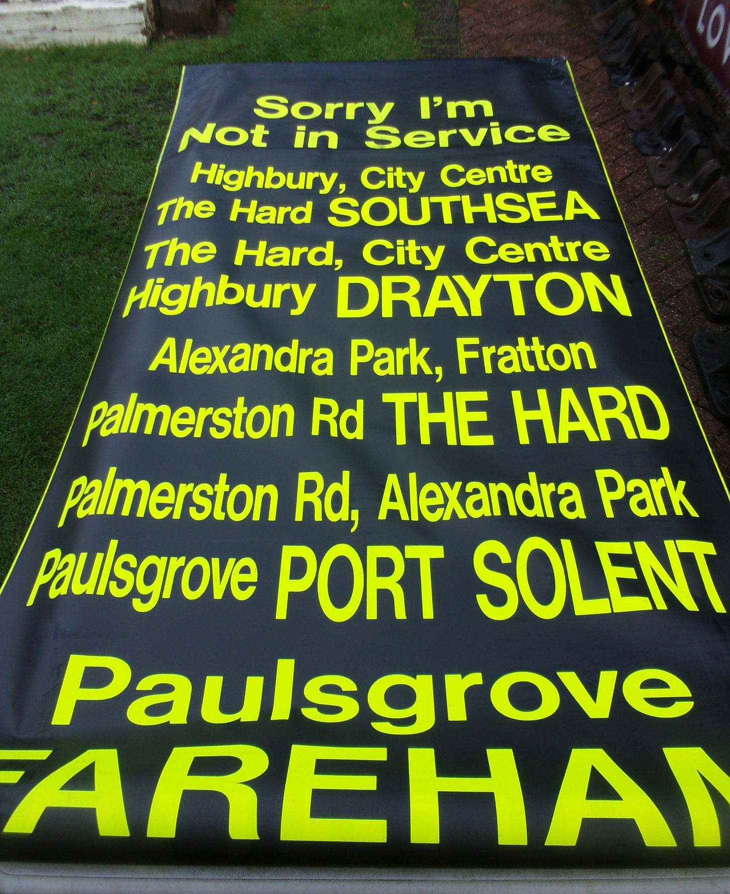 BUS DESTINATION BLIND on plastic, very long. 36″ wide, Fareham area. v.g.c. | View/Bid |