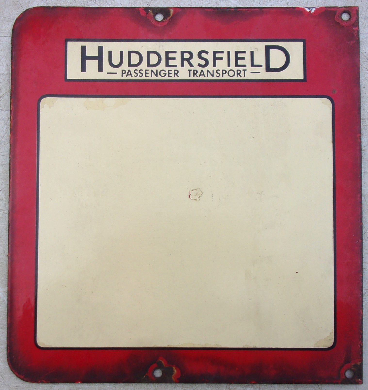 HUDDERSFIELD PASSENGER TRANSPORT BUS STOP FLAG, plain to attach notices & bus routes. 13″ x 14″. Enamel double sided (2 x image to view) | View/Bid |