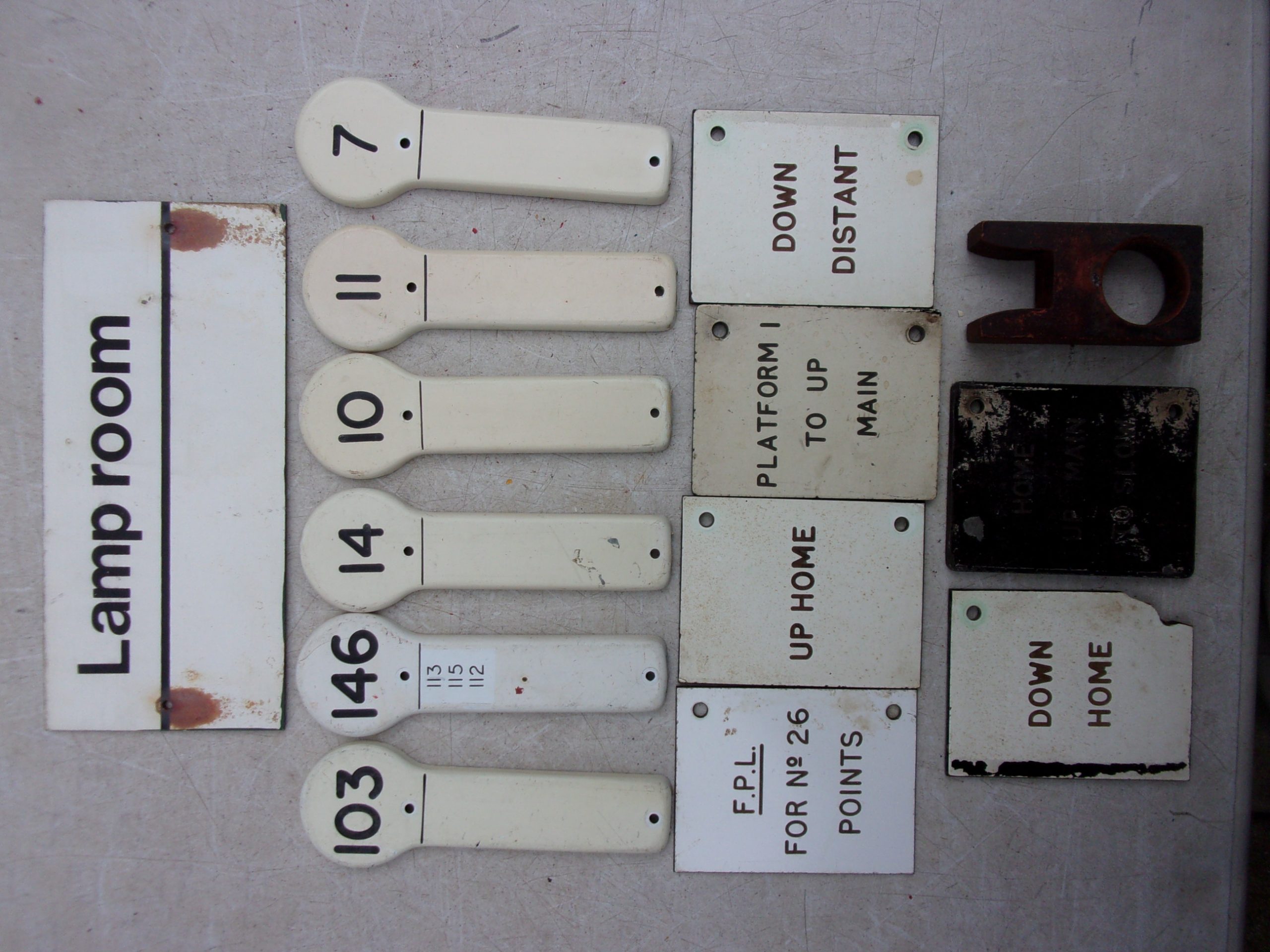 Selection of signal lever leads in plastic, also leads in traffolite, lamp room doorplate, traffolite etc. | Make An Offer |