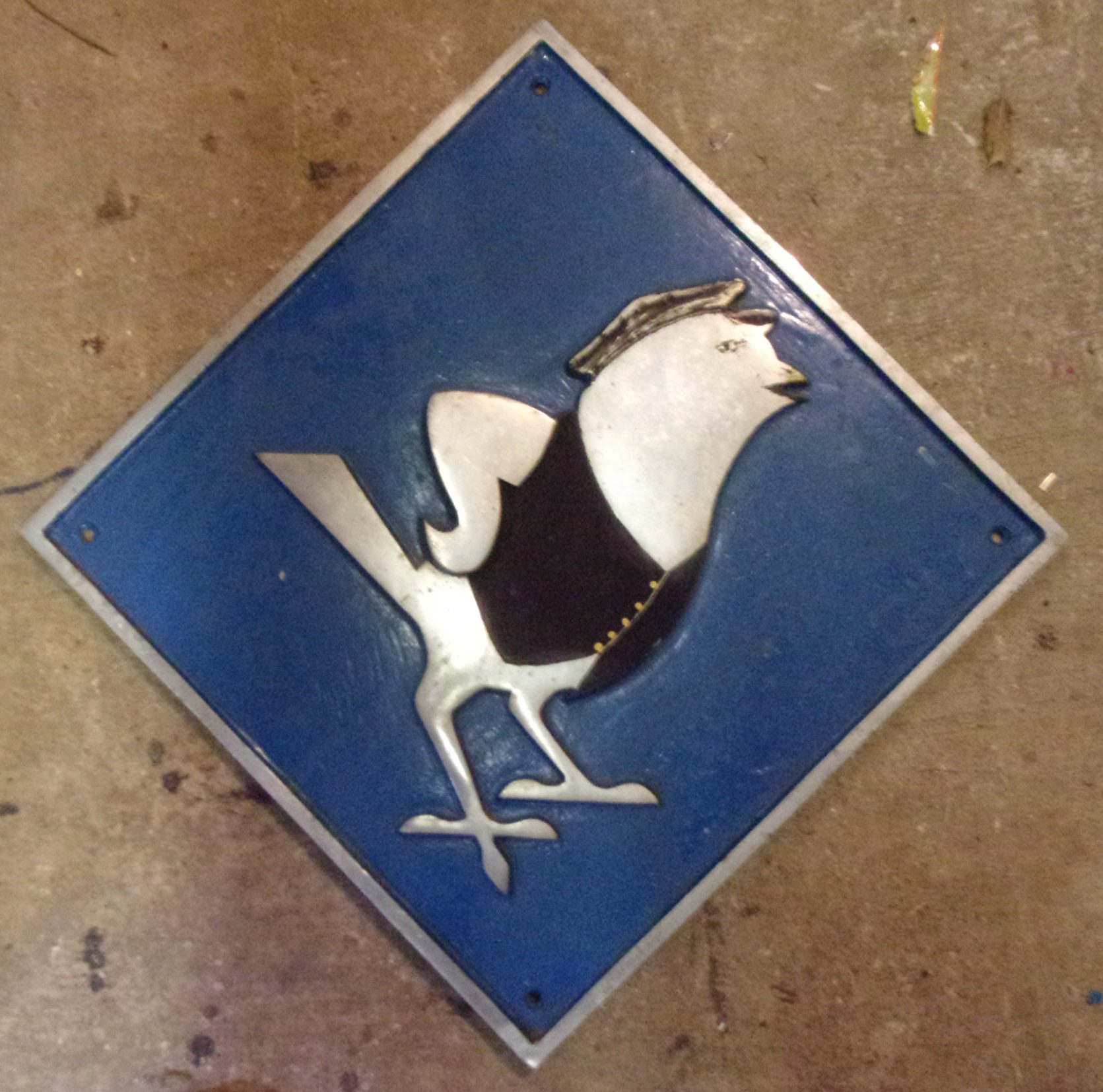 Locomotive depot plaque “Stratford” unofficial design which was banned from use by the depot management, carried for a short time. 12 3/4″ x 12 3/4″, depicting a flying Cockney Sparrow. | £1,000.00 |