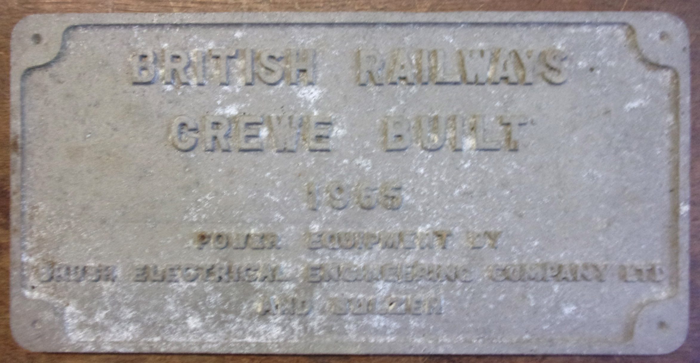 Uncarried cast aluminium loco works plate “British Railway Crewe Built 1965″ blind fixing holes. 13″ x 6 1/2”. | £20.00 |