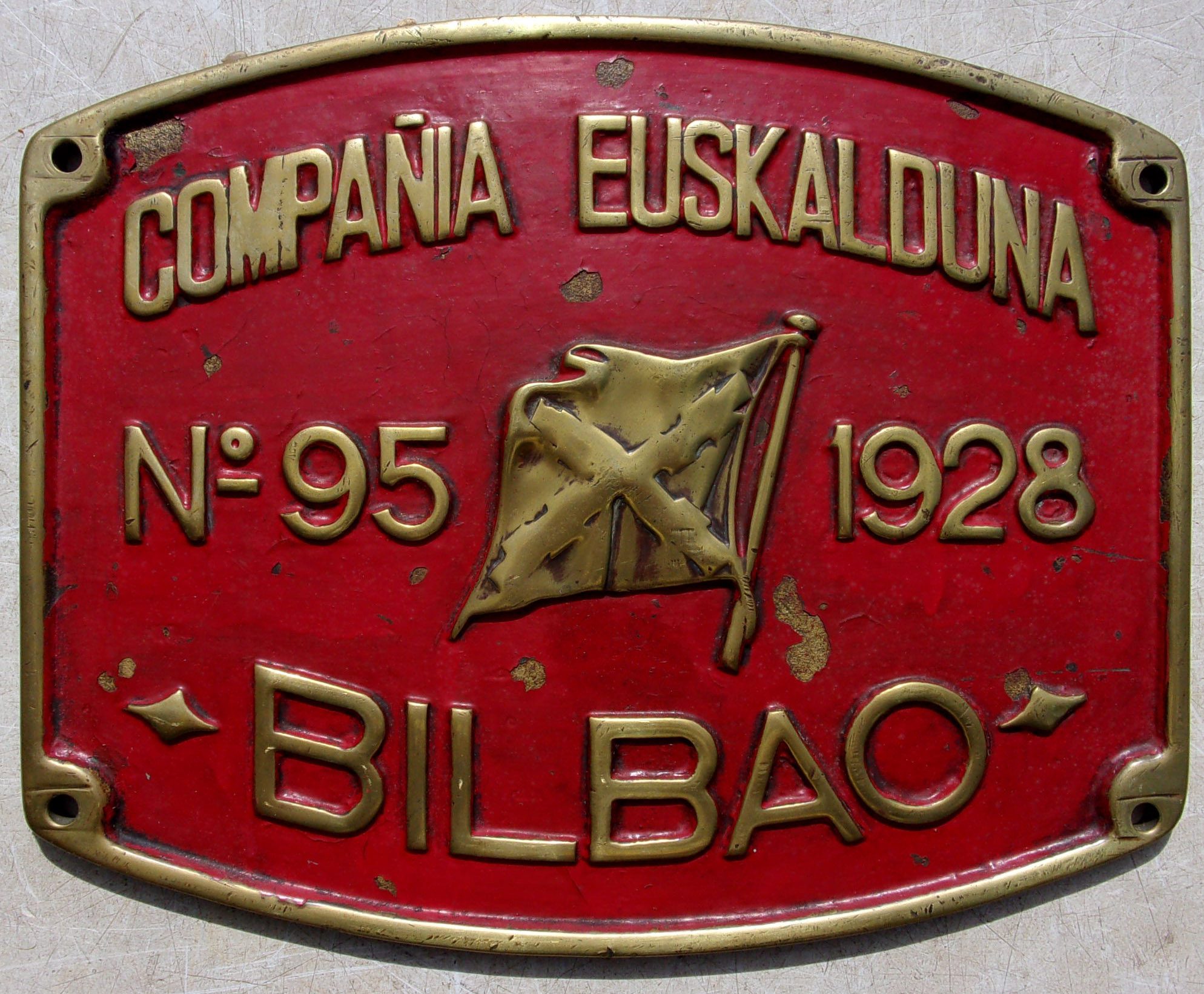 Locomotive Worksplate “Compania Euskalduna Bilbao No. 95, 1928, as carried by R.E.N.F.E Class 271, ex Norte Railway Class 7100, 1500V DC ICO-COI electric locomotive numbered 7107. Built by Compania Euskalduna 1928 with Electrical Equipment by Oerlikon of Switzerland. Embossed cast brass, in lovely ex loco condition. 17″ x 13 1/2”. | Make An Offer |