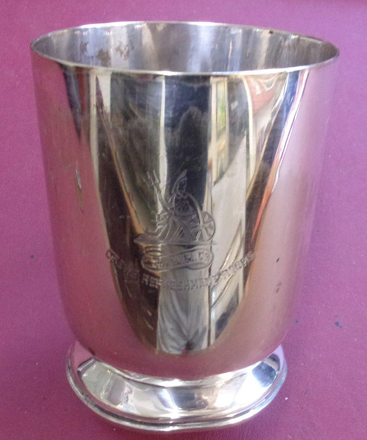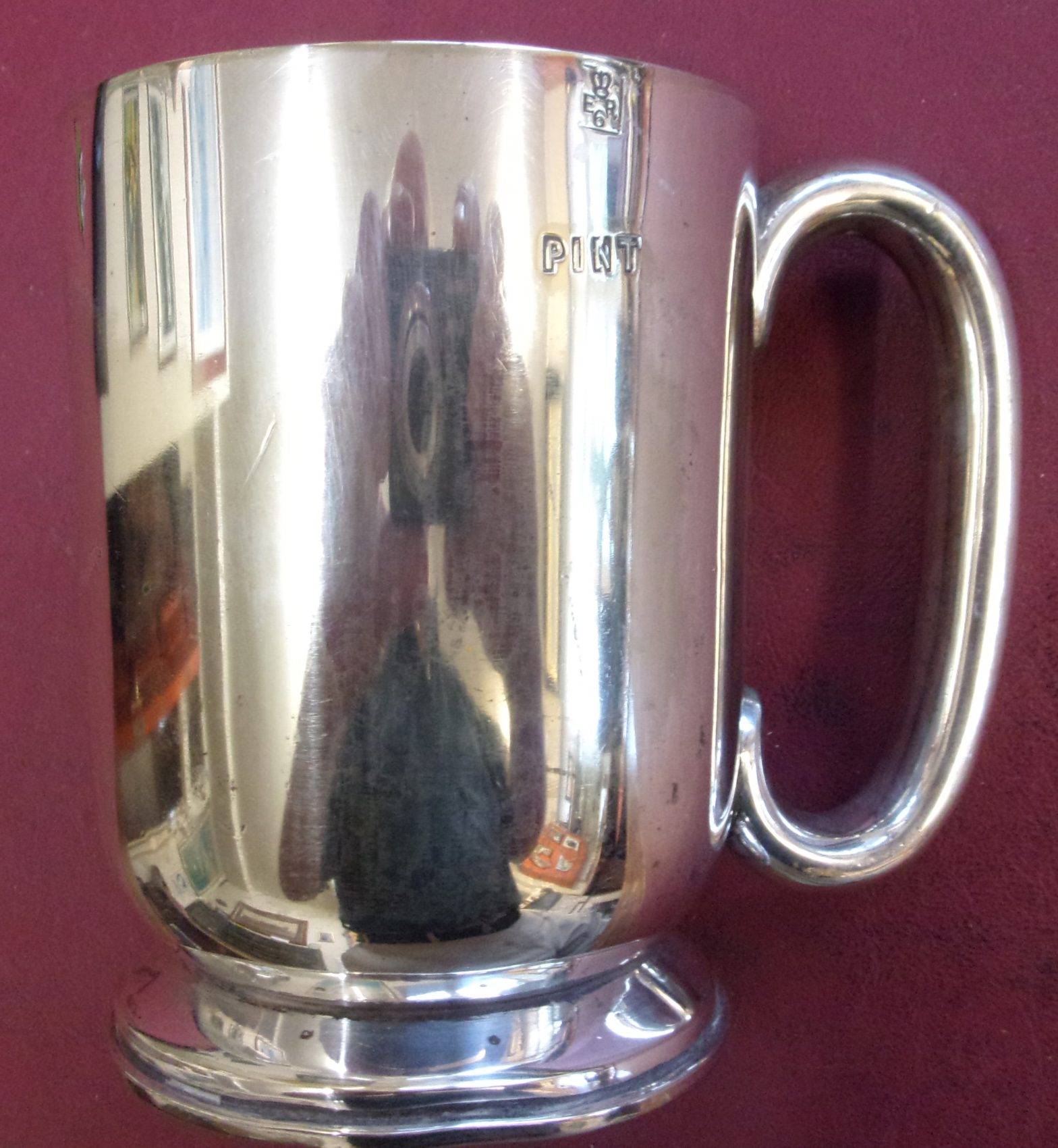 Pint Tankard engraved “L&NWR Crewe Refreshment Rooms” stamped “Pint” with “ER & Crown”, EPNS by Elkington. Few dings, well used. Very nice item. | £30.00 |