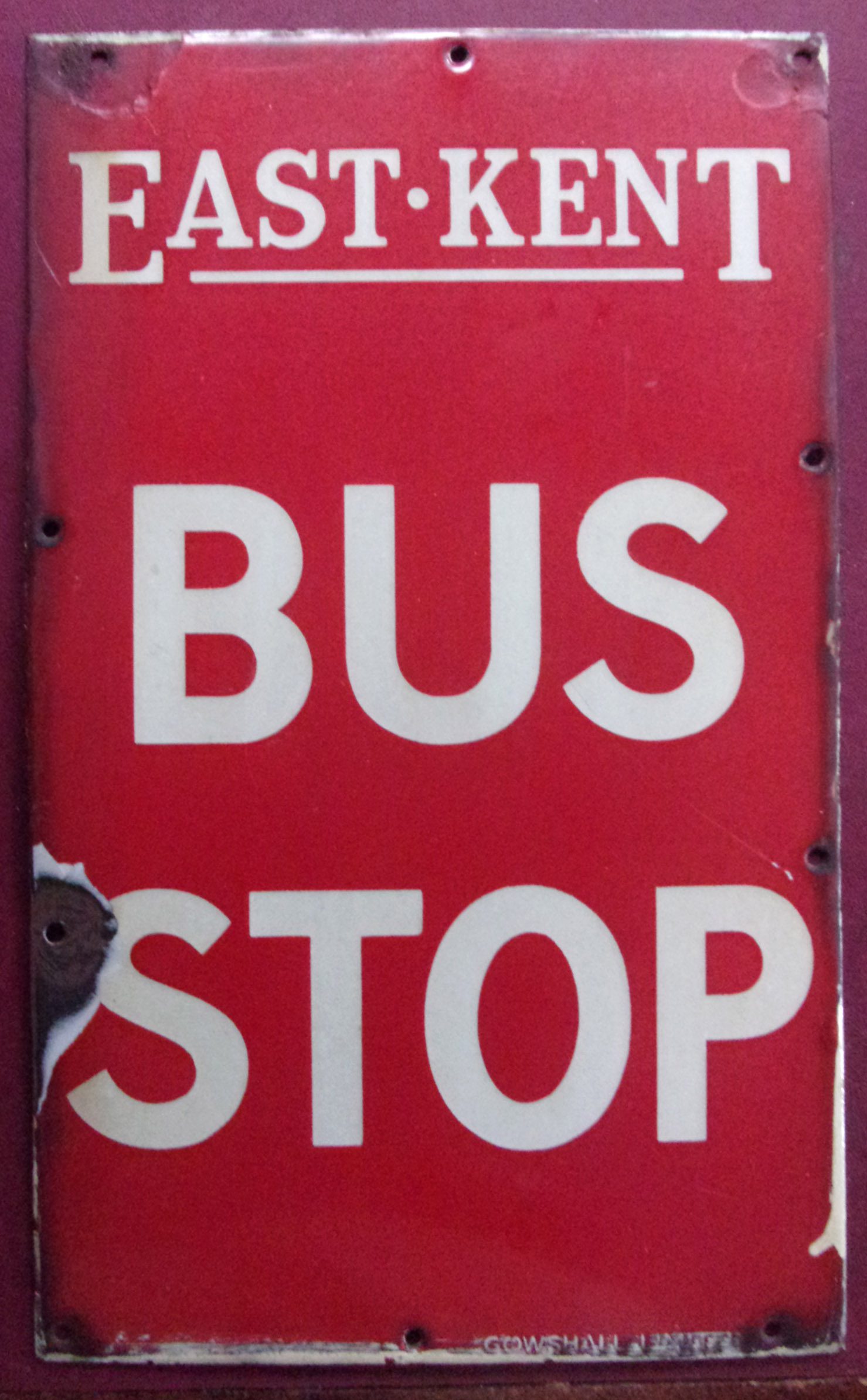 Enamel Sign “East Kent Bus Stop”, good colour & shine. 9 1/2″ x 16″. | £110.00 |
