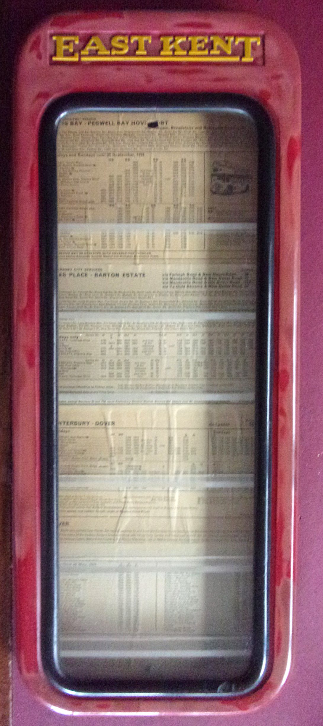 East Kent Bus Timetable Case,glazed. Body is fibre glass 10″ x 25″, as fitted to stage stops etc. V.g.c., do damage, back plate made of ply with timetable sheet. Fashioned to display model buses. | £85.00 |