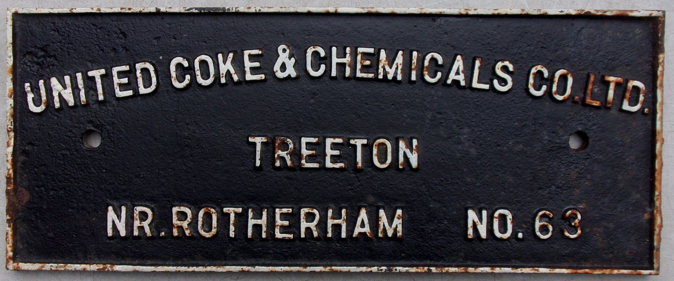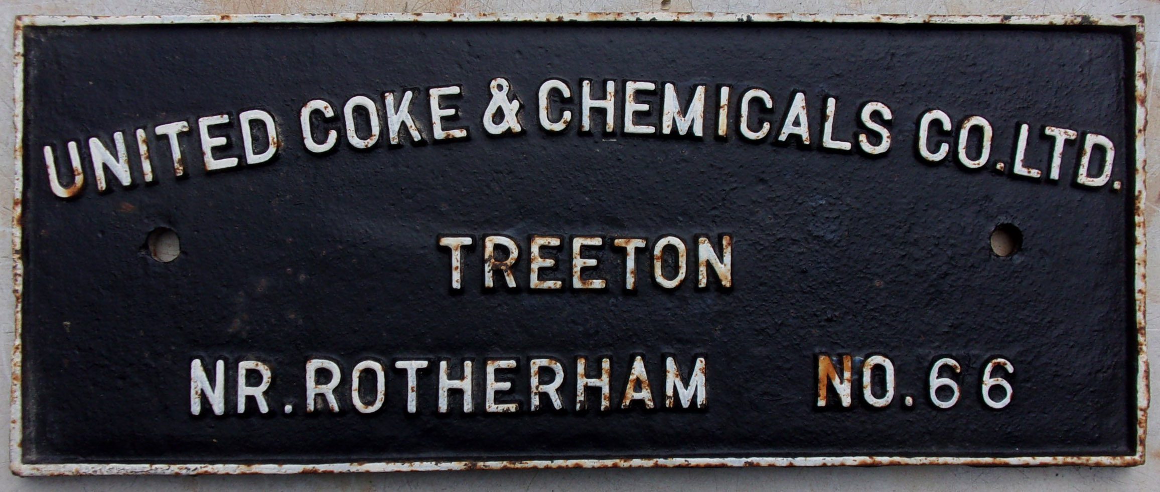 Wagon Plate “United Coke & Chemicals Co. Ltd Treeton, Nr Rotherham Np. 63″. Cast iron. 20″ x 8”. Repainted face only. | £20.00 |