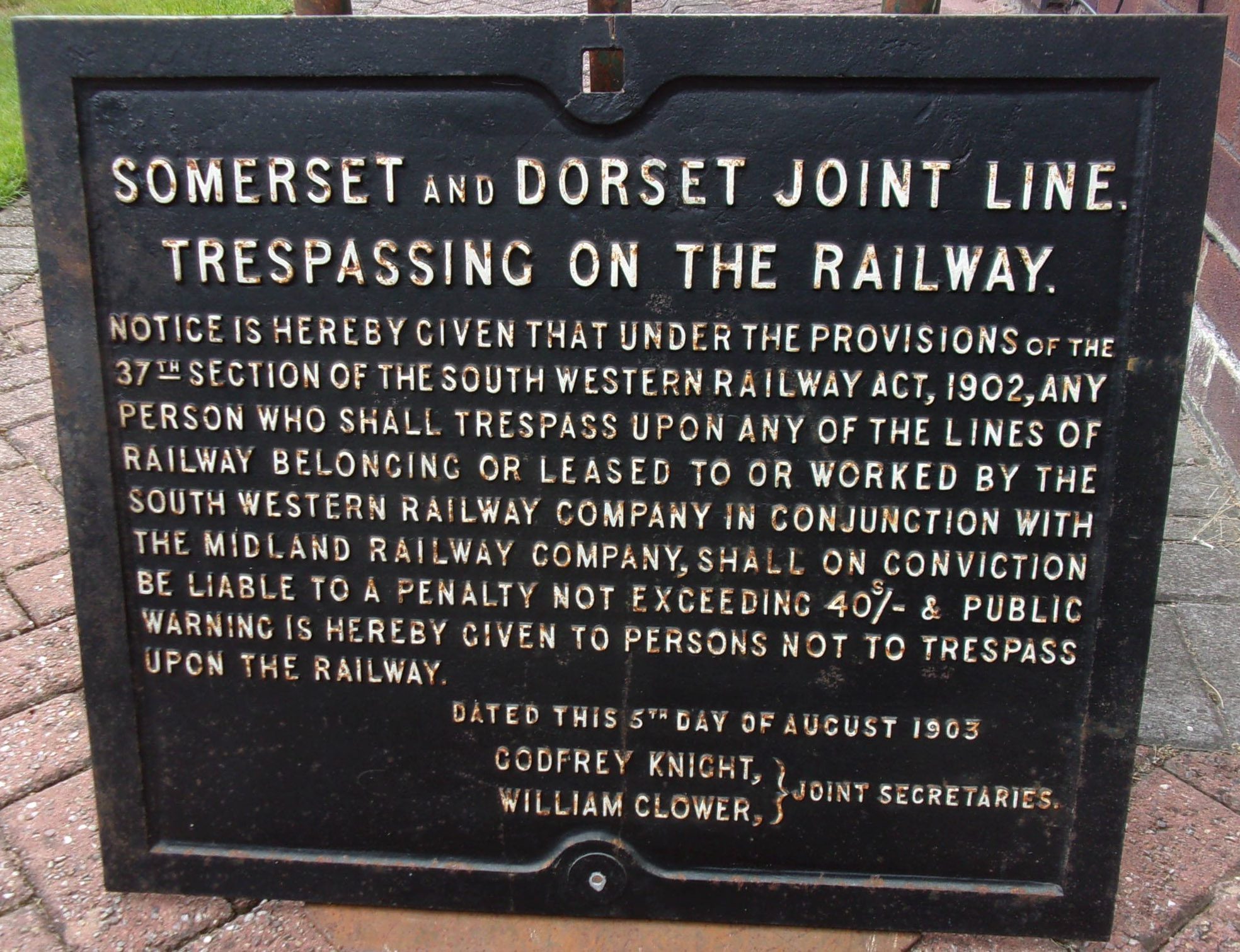 Cast iron sign “Somerset & Dorset Joint Rly” ref to Trespass. Repainted face. Postmark to back, has a crack down the middle but still in one piece. 26″ x 22″. | £110.00 |
