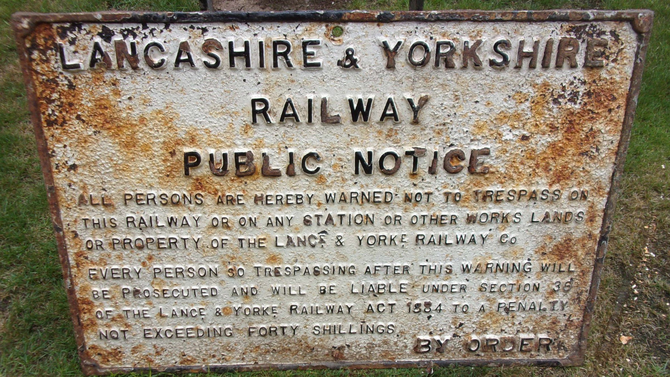 Cast iron sign “Lancashire & Yorkshire Railway Public Notice” ref to Trespass. Repainted a while ago. 32″ x 21″. Sound condition. | Make An Offer |