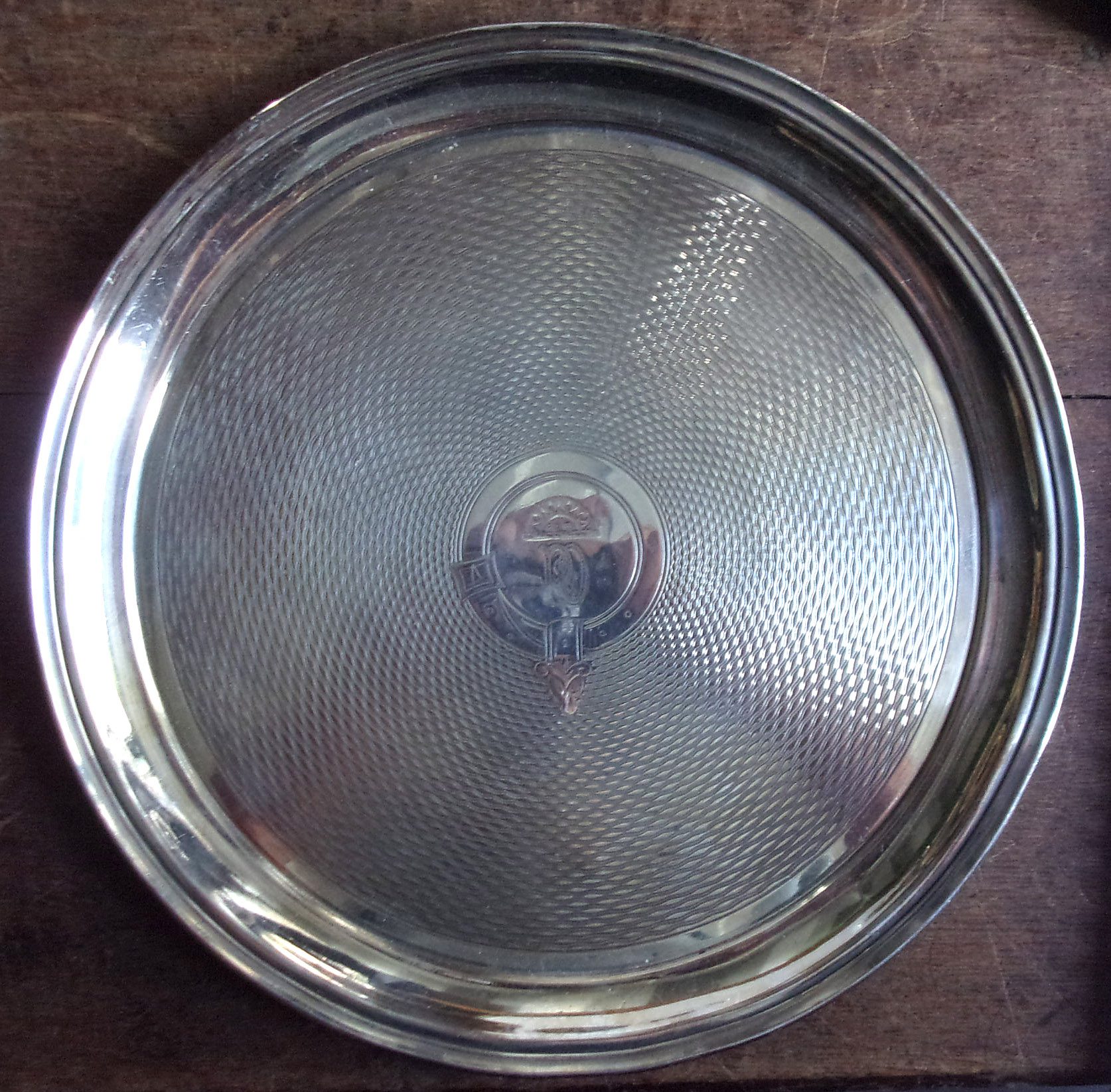 EPNS Pacific & Orient Steam Ship Co. Waiters Tray with company loco engraved to centre, ground engine turned. In pristine condition. 12″ diameter by Mappin & Webb Ltd. | Make An Offer |