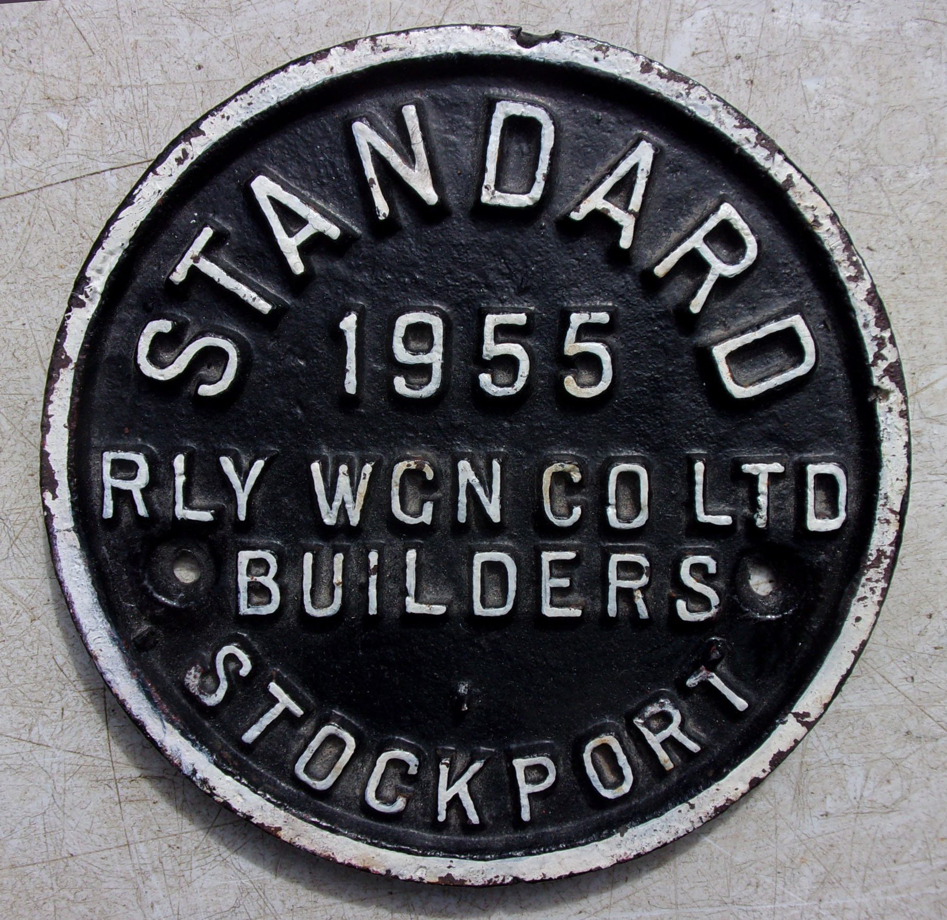 Wagon Plate “Standard Rly WGN Co. Ltd Builders, Stockport 1955”. 5 1/2″ diameter. Repainted face only. | £20.00 |