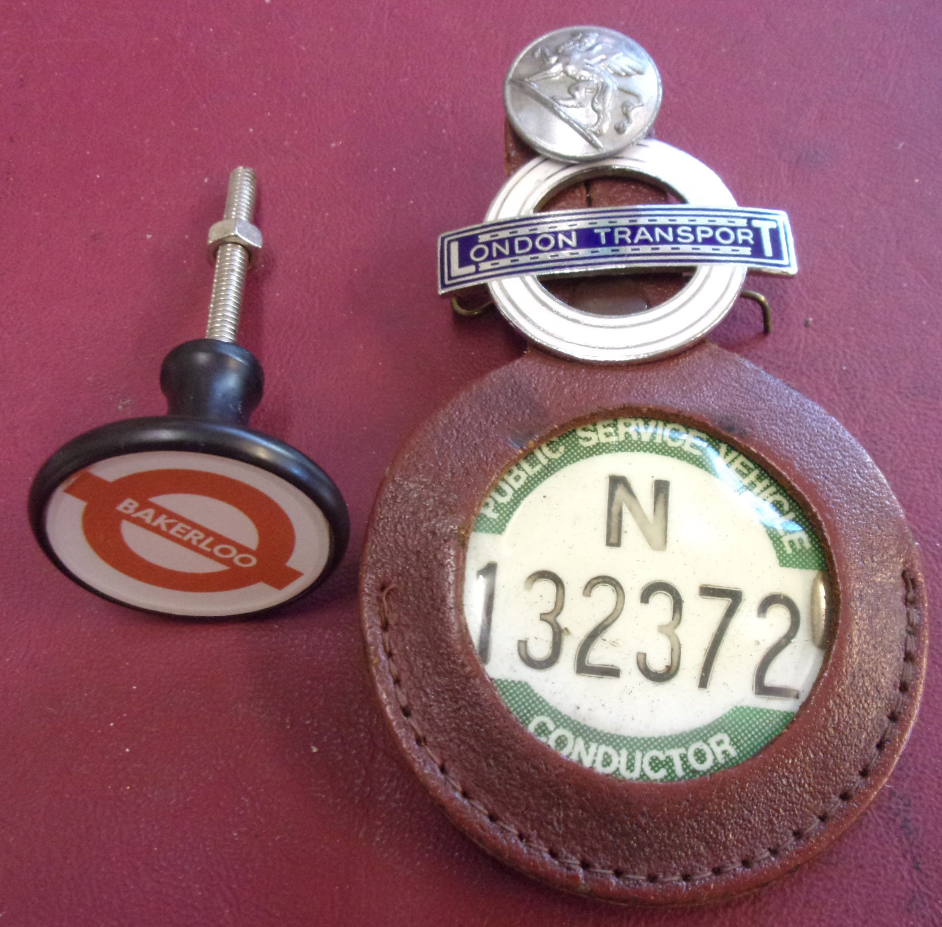 4 x Items, London Transport Conductors Badge in holder, cap badge, Bakerloo Knob & button. | Make An Offer |