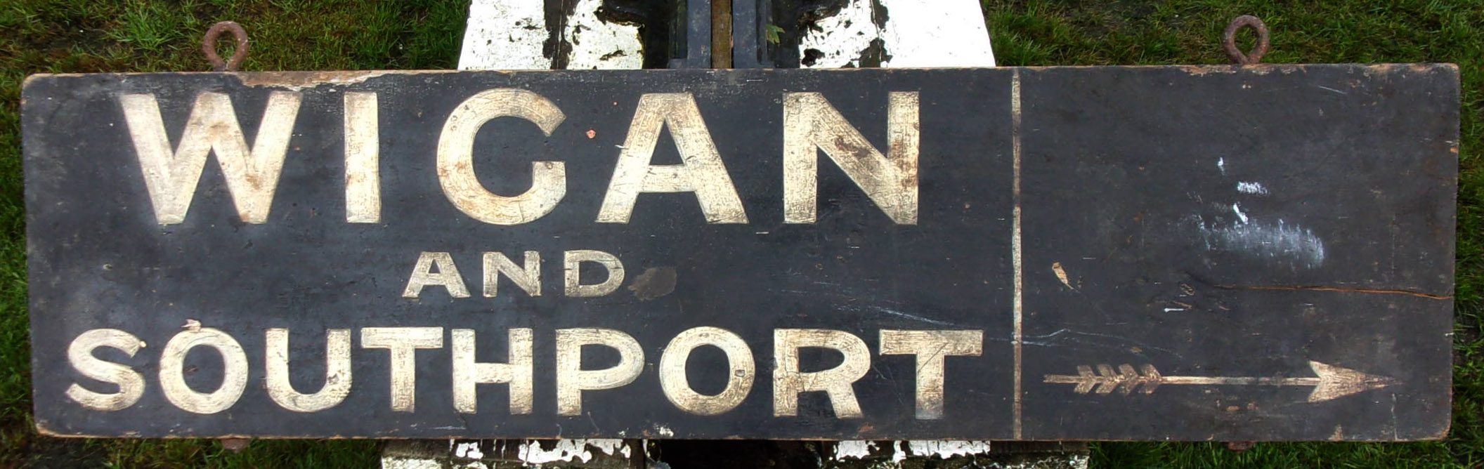 L&YR Platform Indication Board, probably from Manchester Victoria “Wigan and Southport”, double sided, wooden construction, painted letters with hanging loops. 42″ x 11″. | £50.00 |