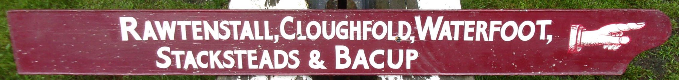 L&YR Station Indicator Finger Board “Rawtenstall, Cloughfold, Waterfoot, Stacksteads & Bacup. Double sided, other side has been over painted a few times, take your pick from what is present. Painted board, sound condition. 53″ x 5 1/2” | £90.00 |