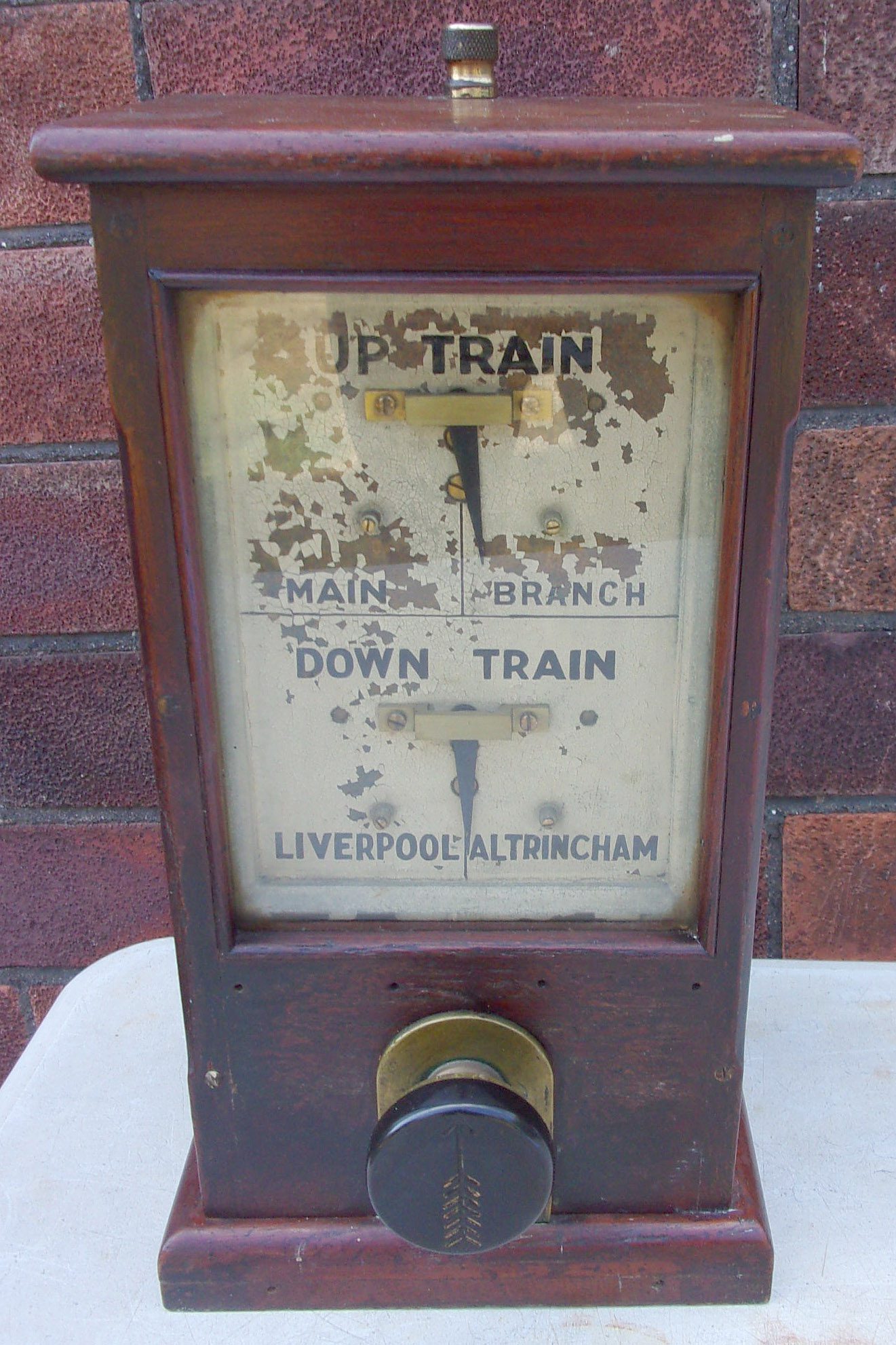 Cheshire Lines double line block instrument in super ex box condition, written “Up Train Main/Branch” Down Train Liverpool, Altrincham”. Needle free. 13″ x 7″ x 6″ deep. | £480.00 |
