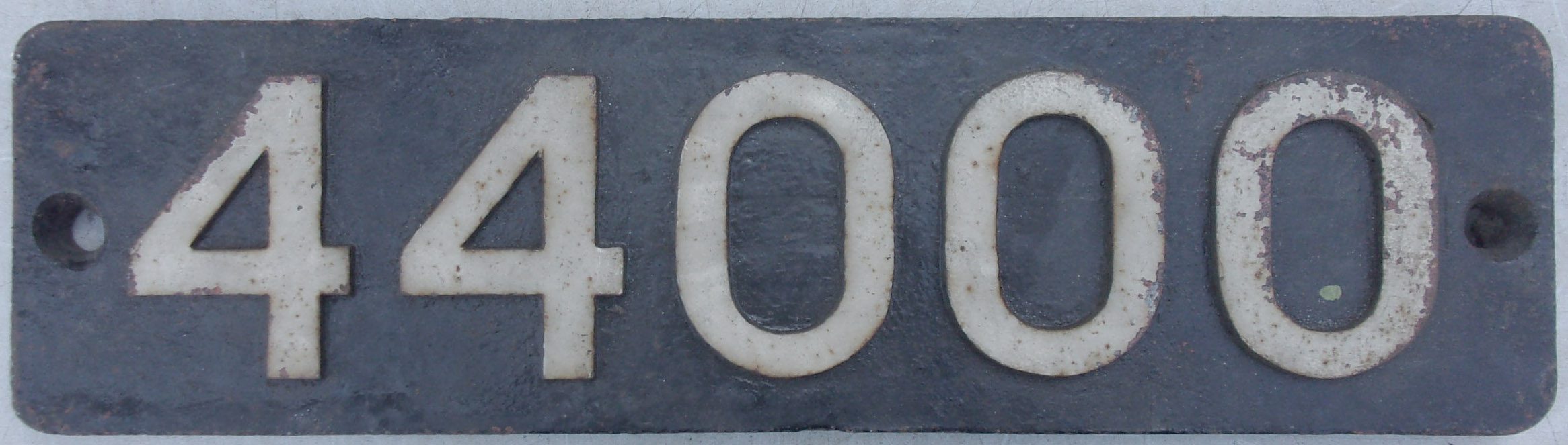 Smokebox Numberplate “44000” as carried by Fowler 4F 0-6-0, built Derby 1921. Allocations included Skipton, Hellifield. Withdrawn 1959. Lightly cleaned. | Make An Offer |