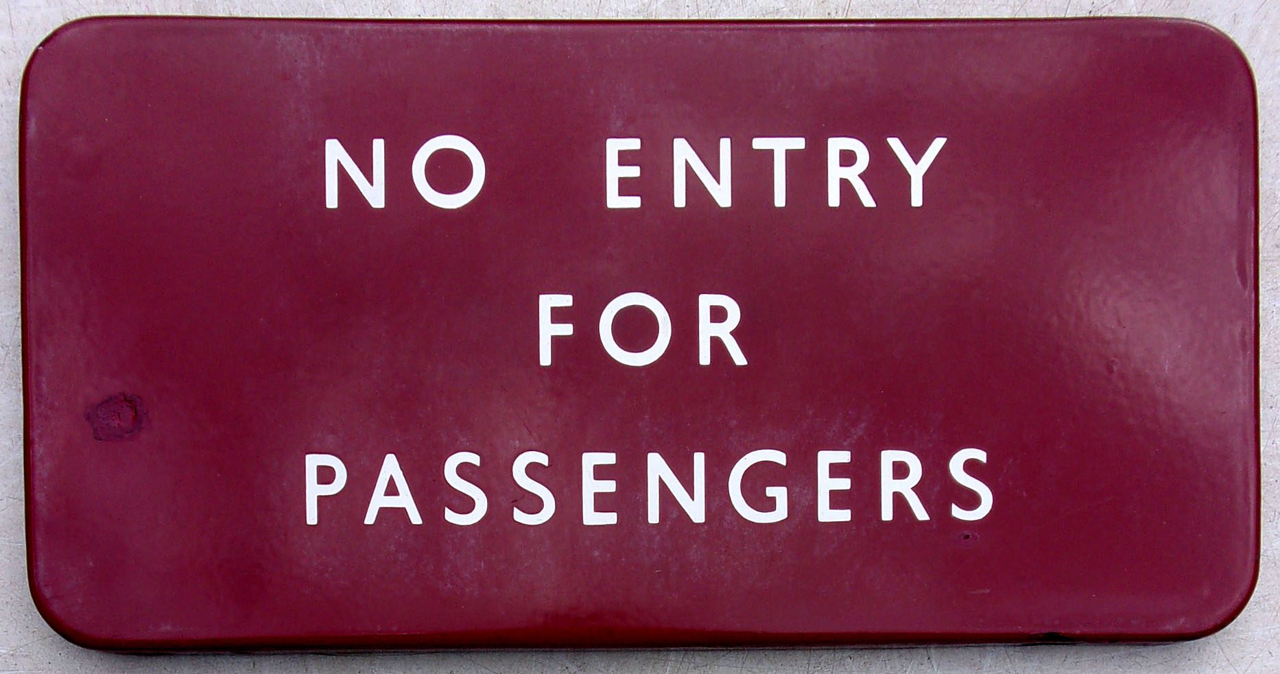 Enamel Sign “No Entry For Passengers” BR(M) FF. Super colour & shine & small repairs to face, does not detract. 18″ x 9″. | £180.00 |