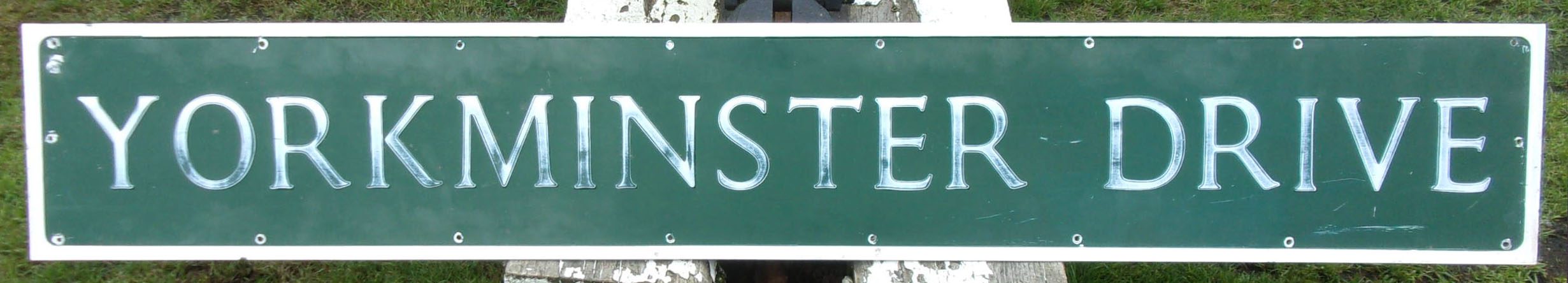 Street Sign “York minster Drive”. Pressed sheet aluminium. 57″ x 9″. | Make An Offer |